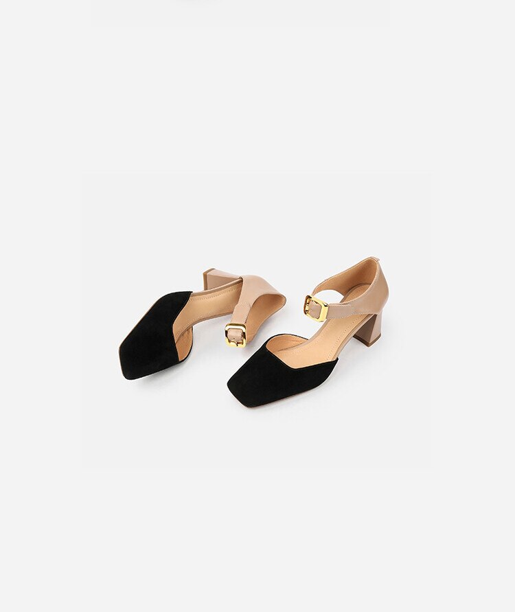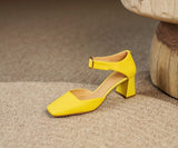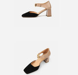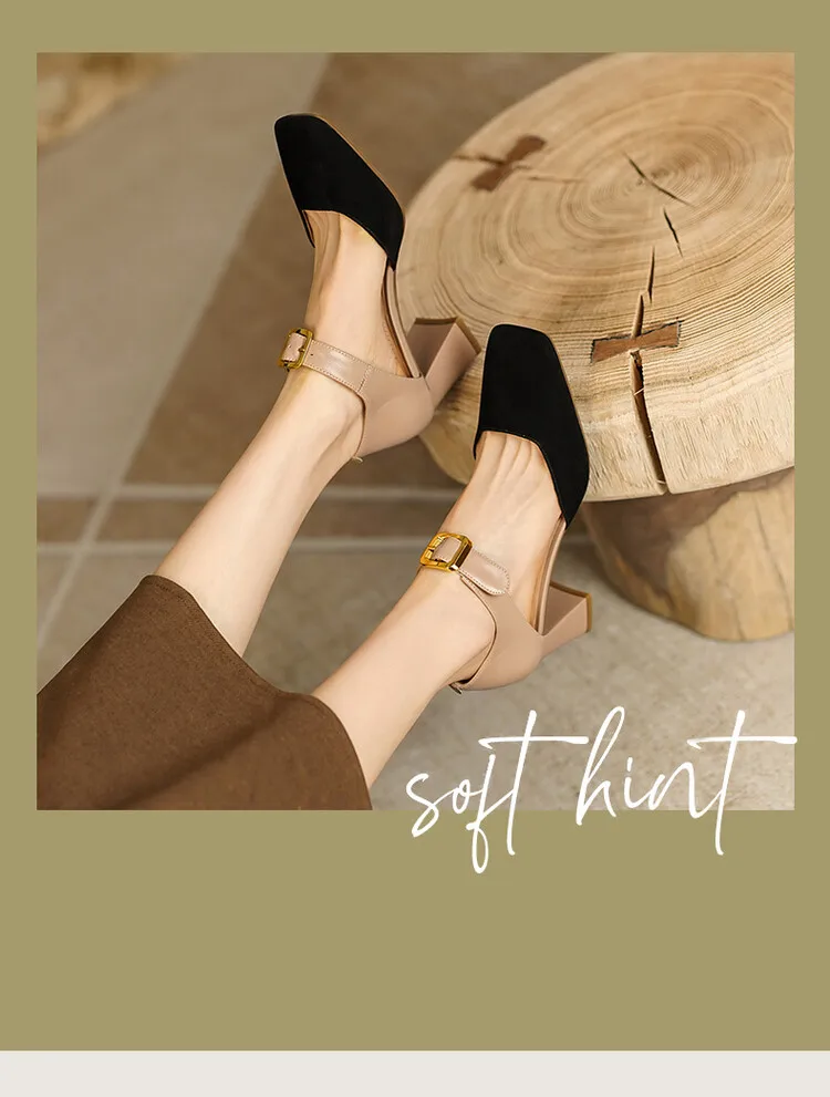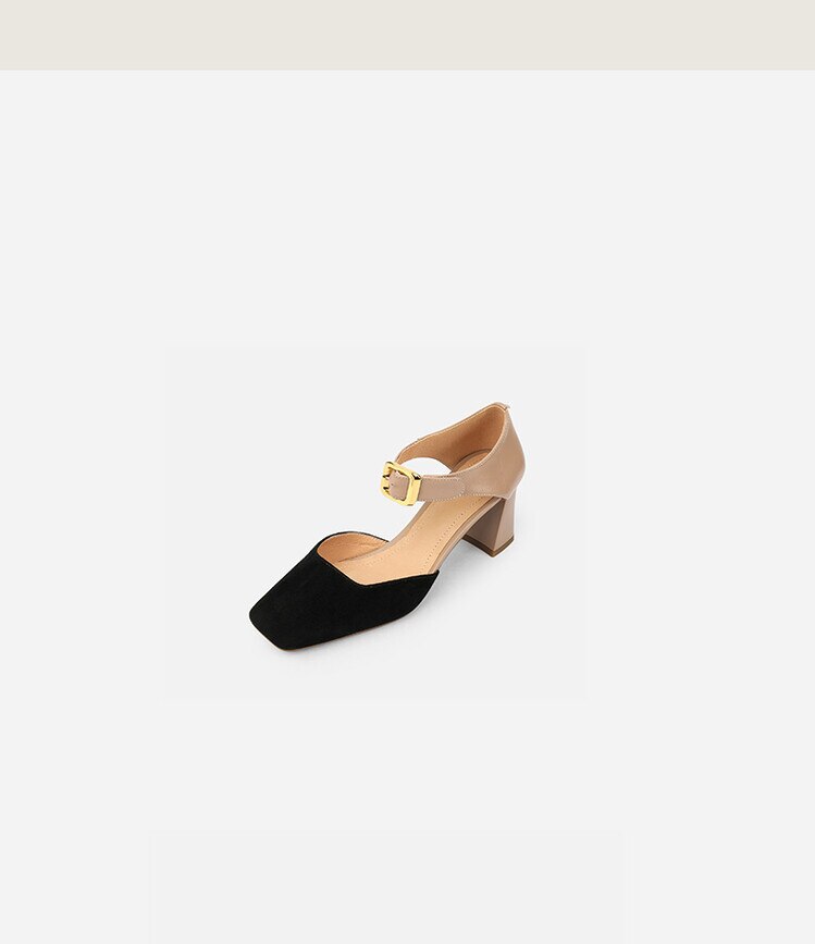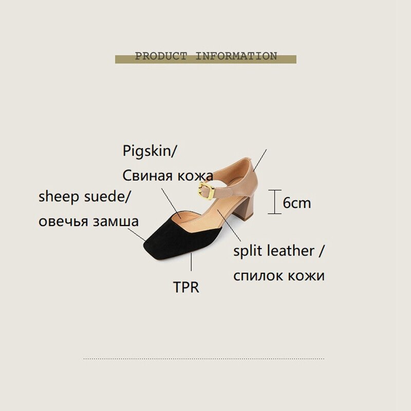 Sheep Suede Leather Shoes Women Summer/Spring Women Sandals Square Toe High Heels Cover Heel Shoes for Women Retro Mary Janes