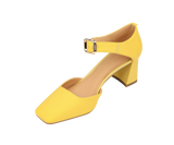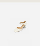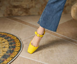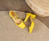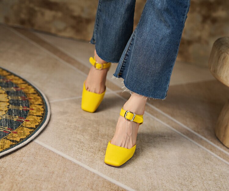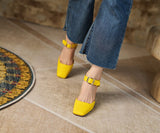 Yeknu Sheep Suede Leather Shoes Women Summer/Spring Women Sandals Square Toe High Heels Cover Heel Shoes for Women Retro Mary Janes