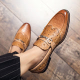 Yeknu Shoes For Brown Mens Formal Genuine Leather Oxford Italian Dress Shoes Wedding Slip on Business Shoes 369 Plus Size