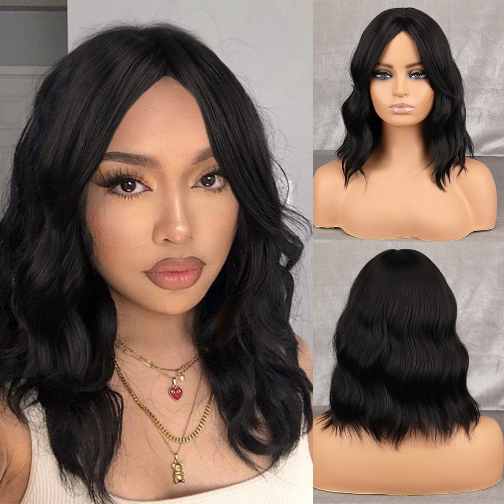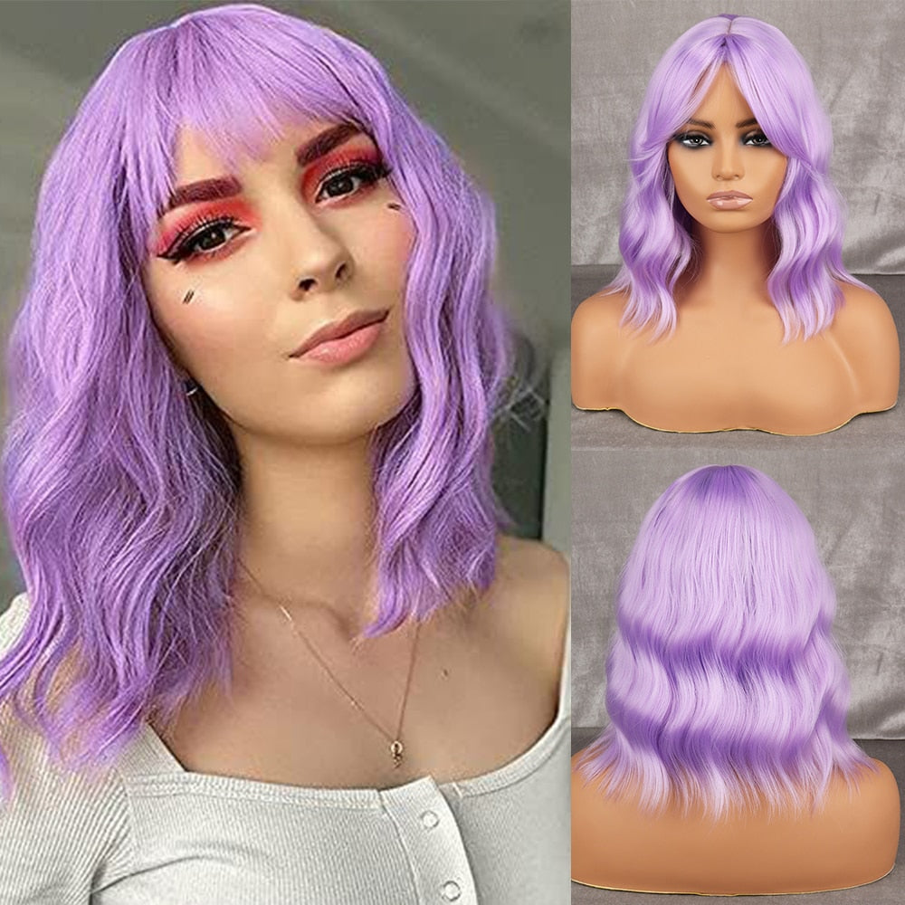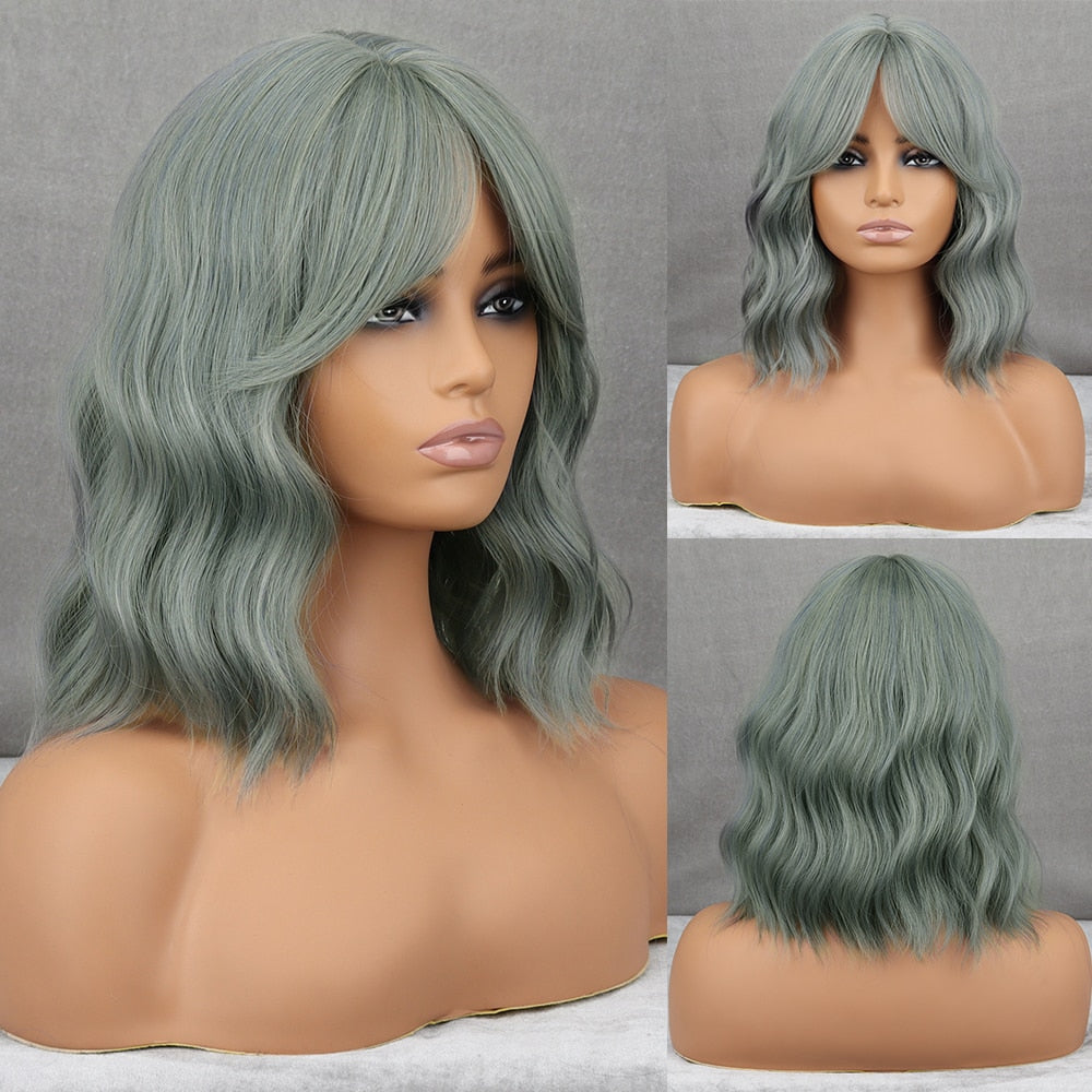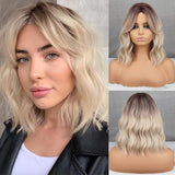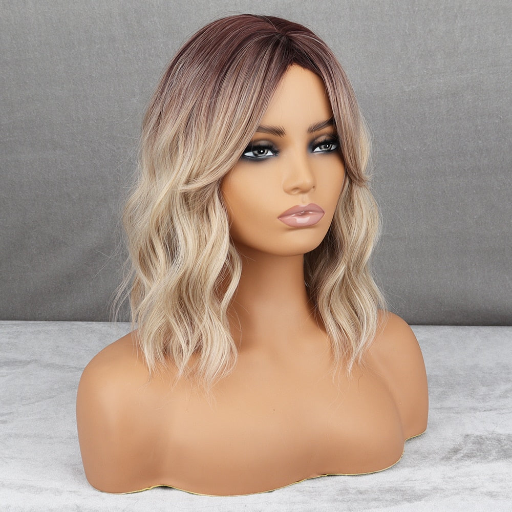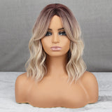 Yeknu Short Brown Ombre Beige Wavy Hair For Women Synthetic Heat Resistant Wig Suitable For Cosplay Wig