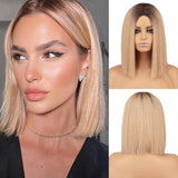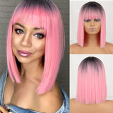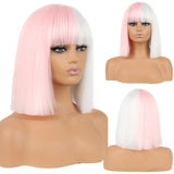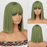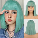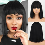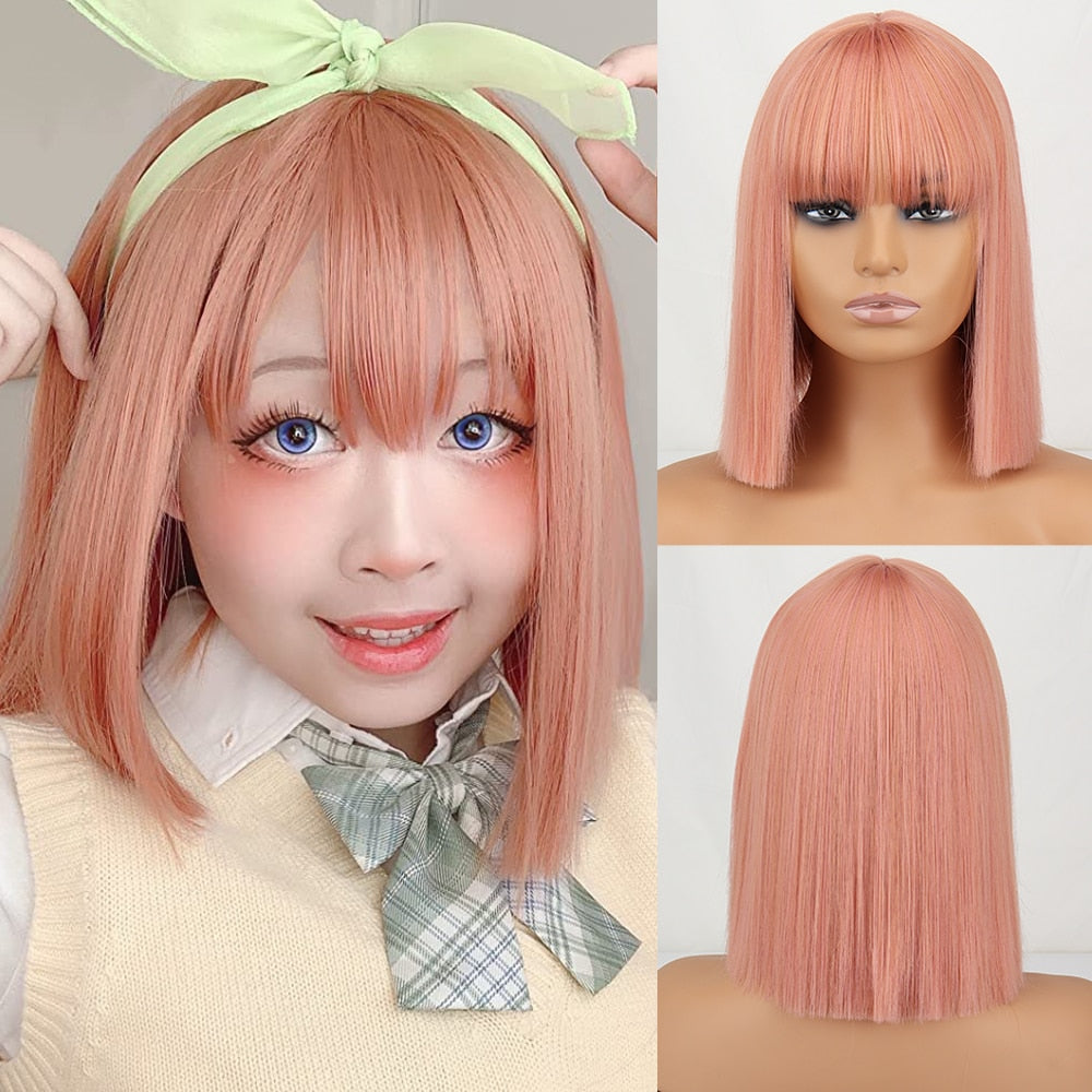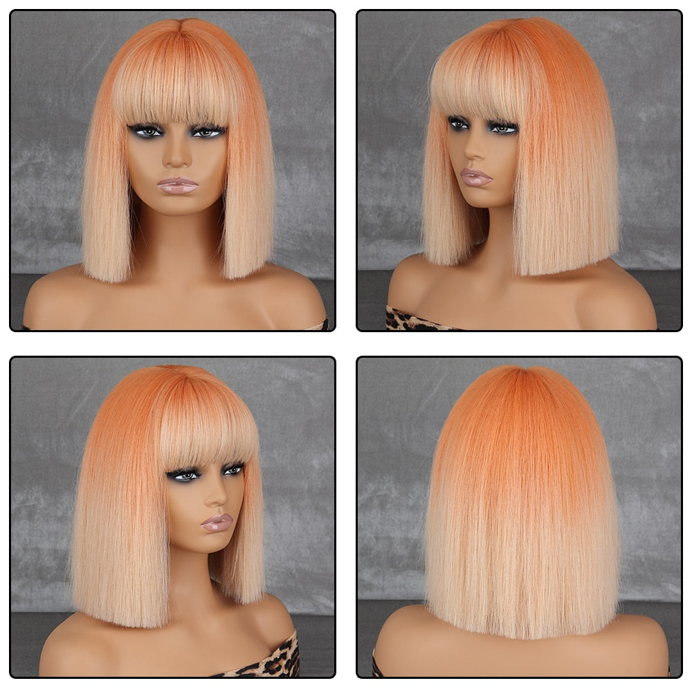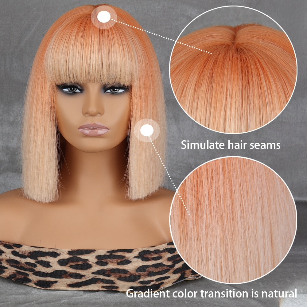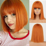Yeknu Short Orange Straight Bob Wig Synthetic Wigs For Women With Bangs Daily Cosplay Hair Heat Resistant