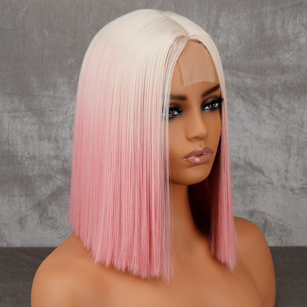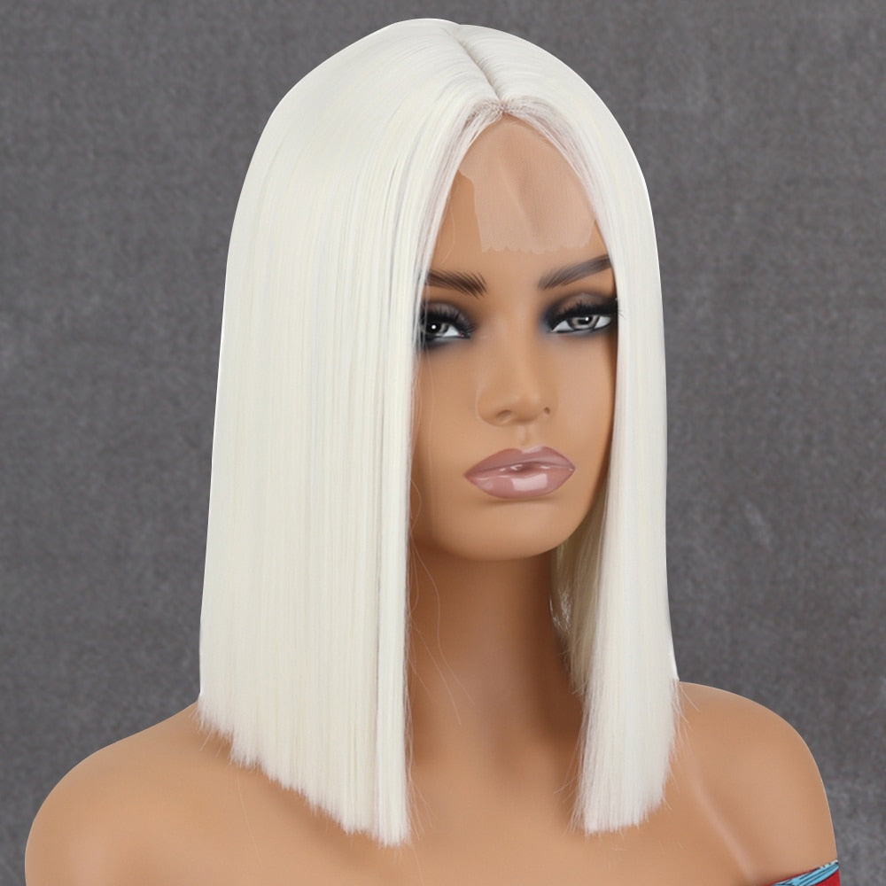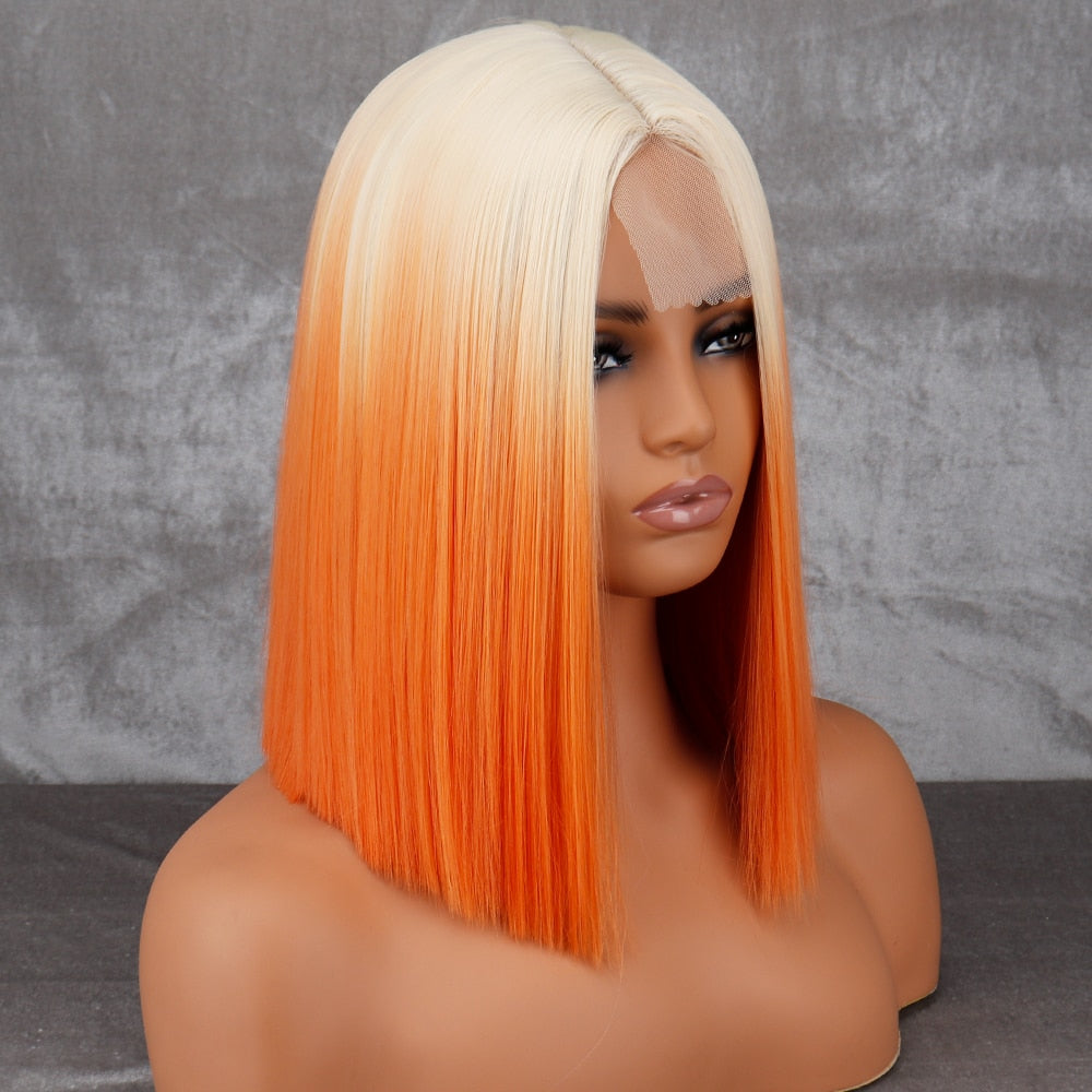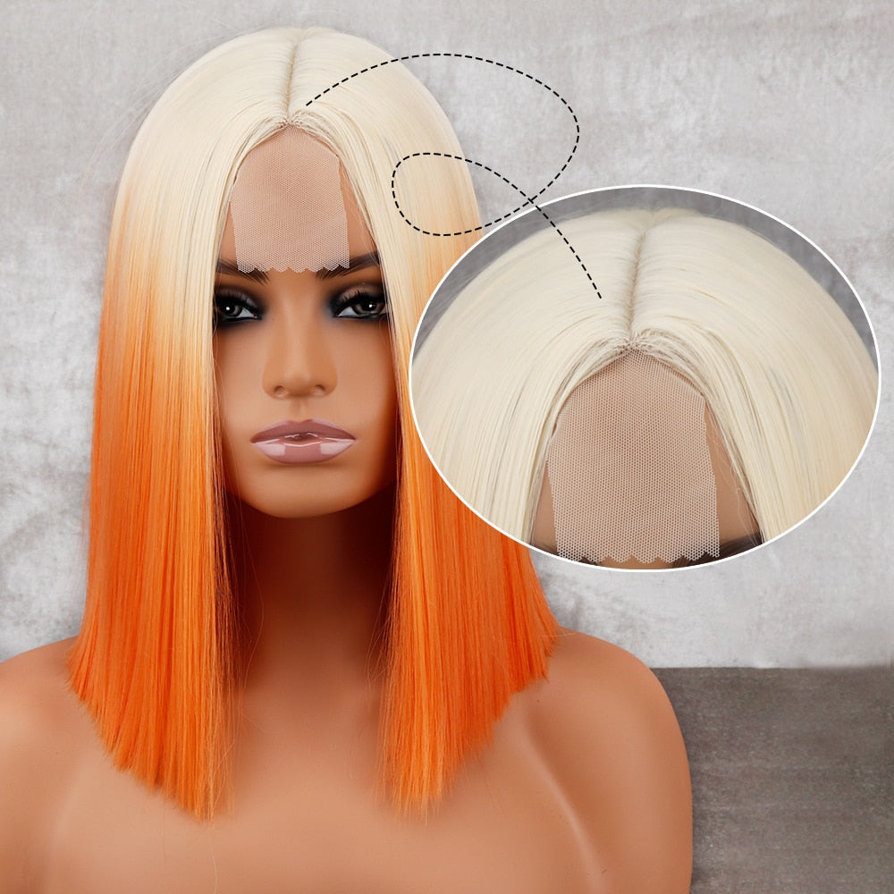 Yeknu Short Orange Wig Middle Part Blonde Lady Bob Hair Synthetic Heat Resistant Wig Cosplay Wig