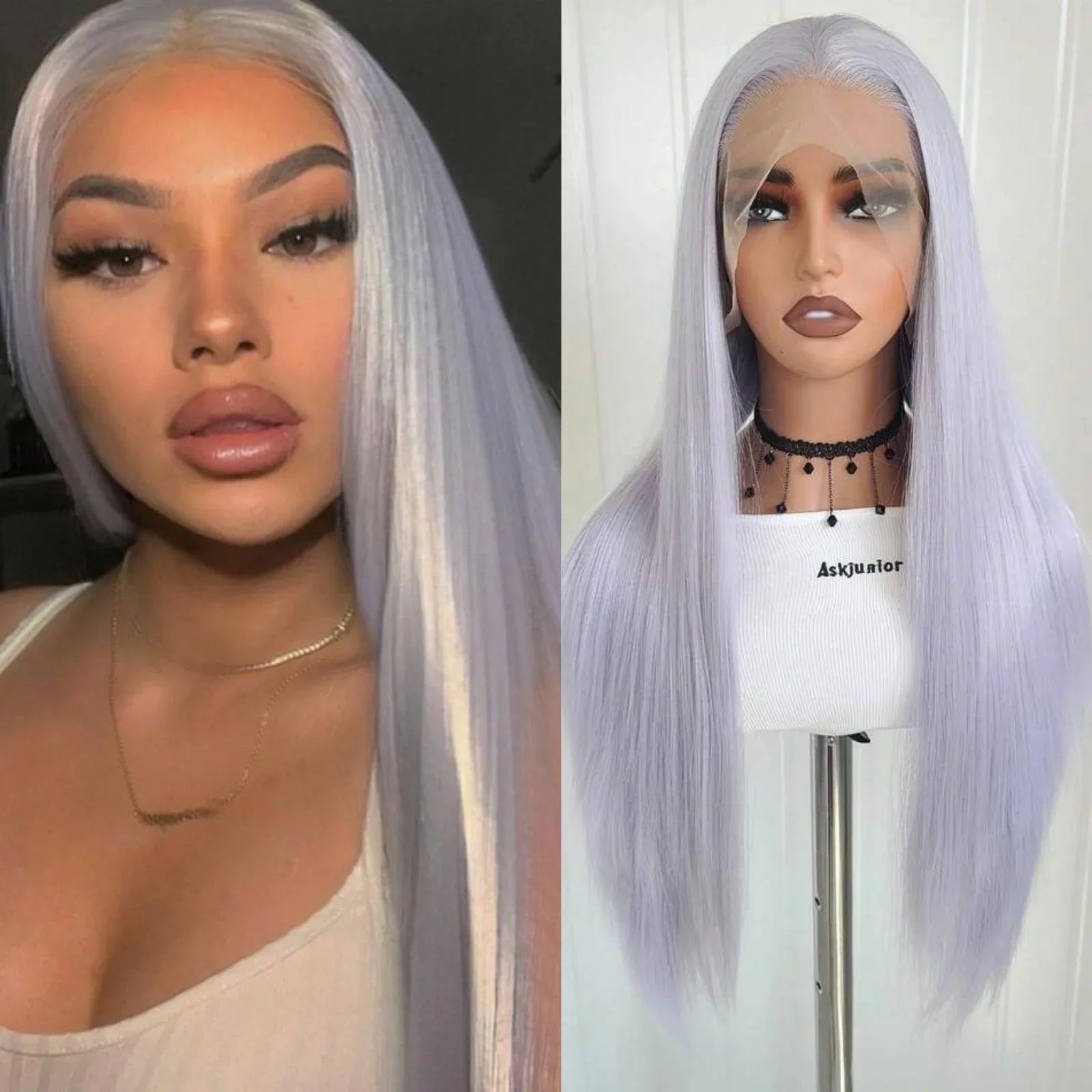 Silver Grey Lace Front Wig Long Silky Straight Synthetic Hair Light Purple Lilac Colored 13X4 Frontal Wigs for Women Daily Party Cosplay