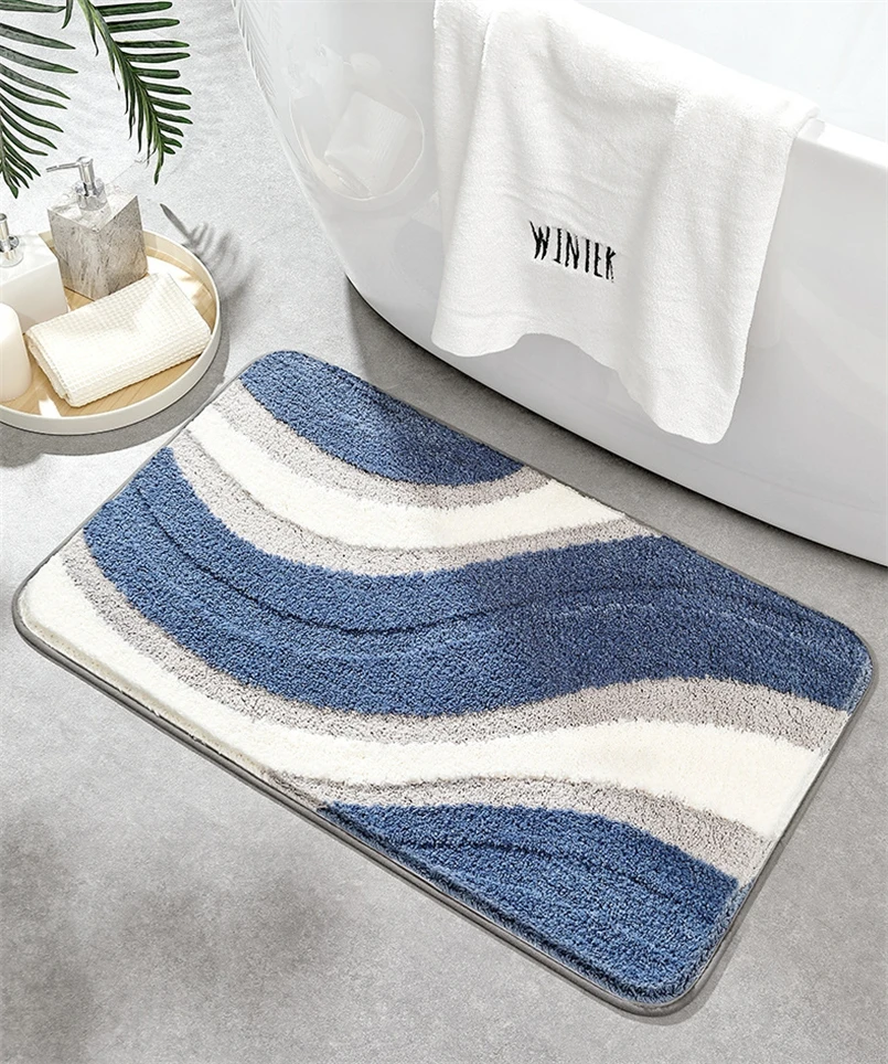 Yeknu Simple Modern Flocking Absorbent Foot Mat Household Bathroom Anti-slip Mat Entrance Bedroom Entrance Thickened Carpet