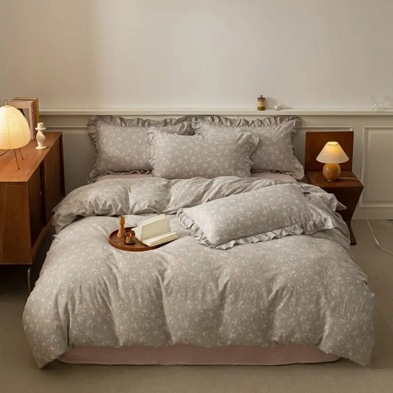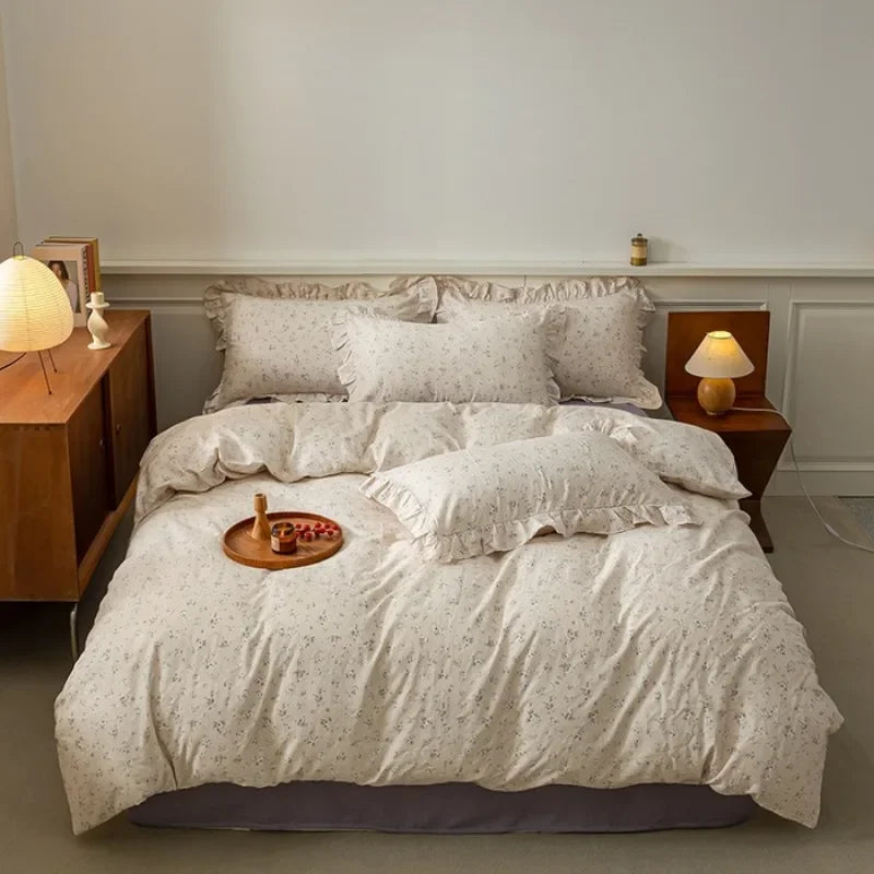 Yeknu Spring and summer new French floral maternal and infant grade cotton Class A double-layer yarn lace pure cotton four-piece set