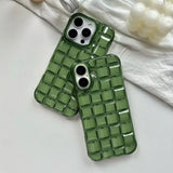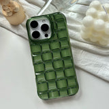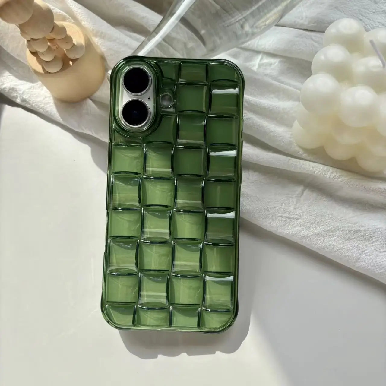Yeknu Stereoscopic Green Woven Plaid Convexity Soft Transparent Cube Pattern Cover Phone Case for iPhone 11 12 13 14 15 16 Pro Max