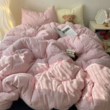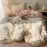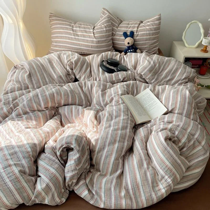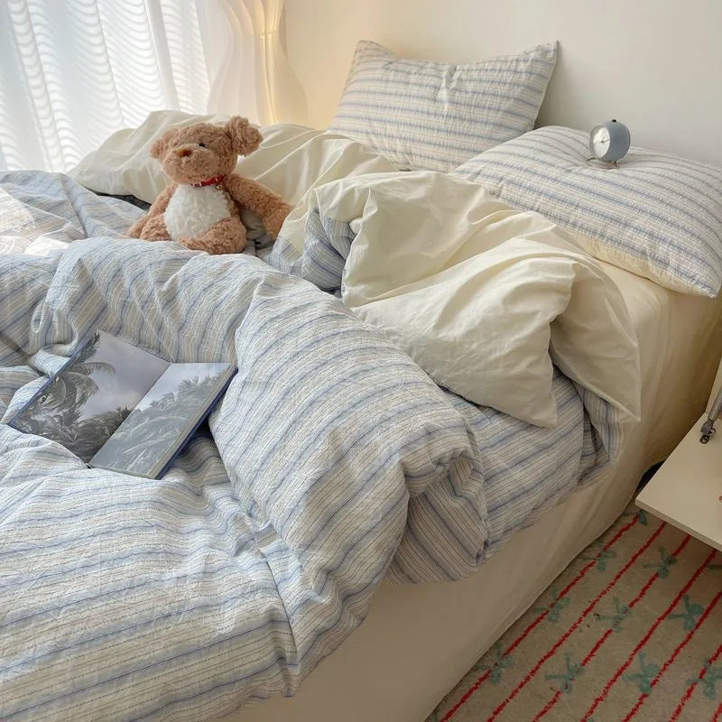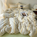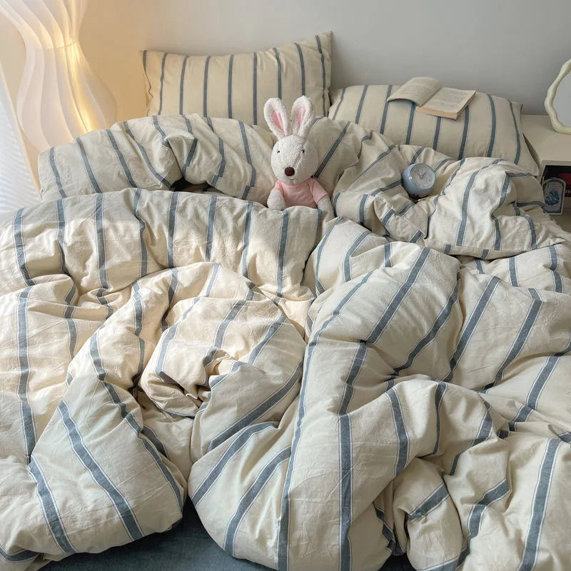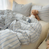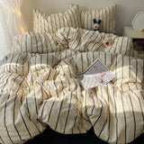 Yeknu Striped Bedding Set INS Nordic Girls Soft Washed Cotton Bed Sheet Queen King Size Duvet Set Comforter Set Pillowcase Bed Linens