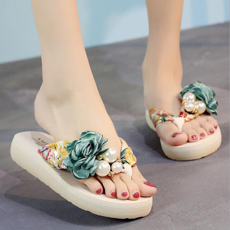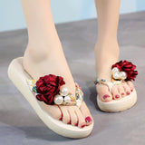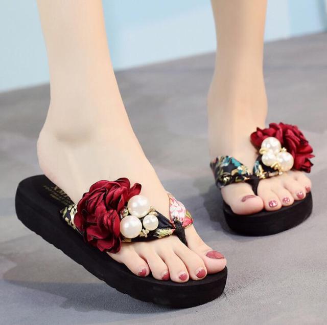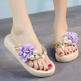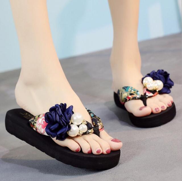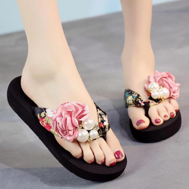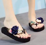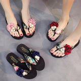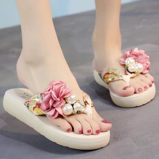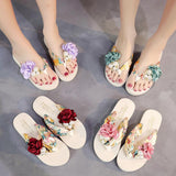 Yeknu summer beach flip flops women's sandals Handmade flowers casual clip flat sandals slippers outside wearing women's shoes c587
