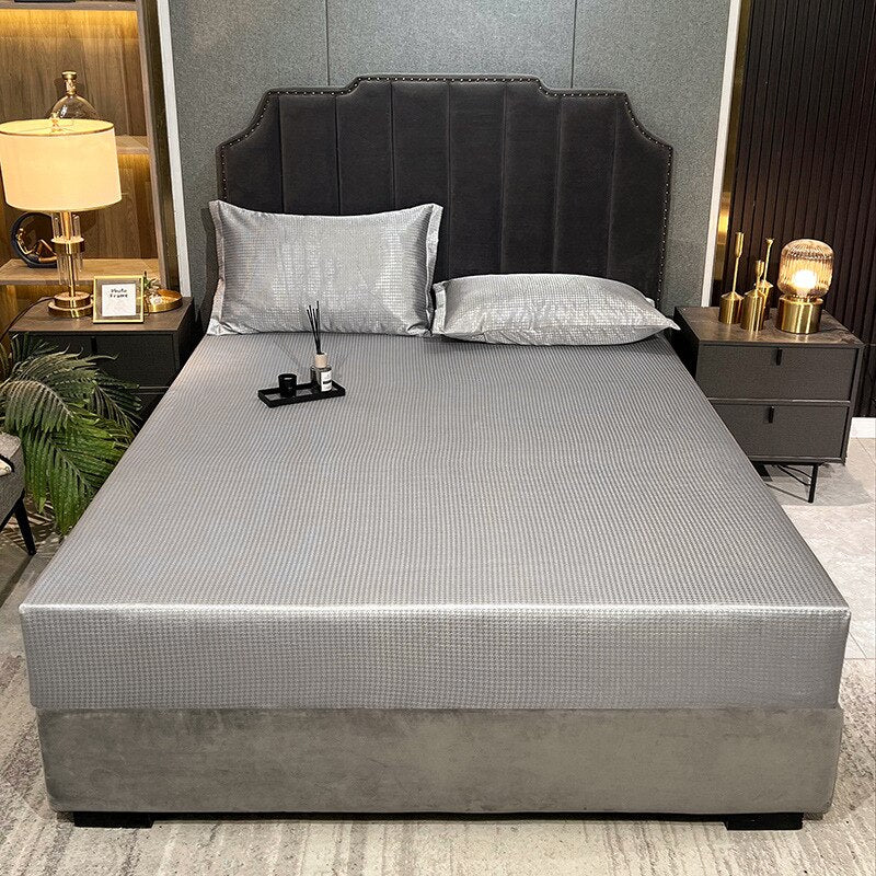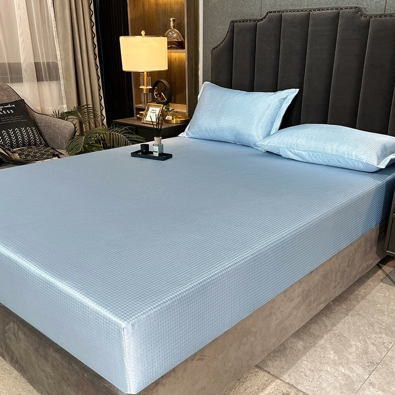 Yeknu Summer Ice Fiber Jacquard Mat Fitted Sheet Set Cooling Breathable Comfortable Mattress Protector Washable 150*200cm 3PCS