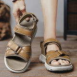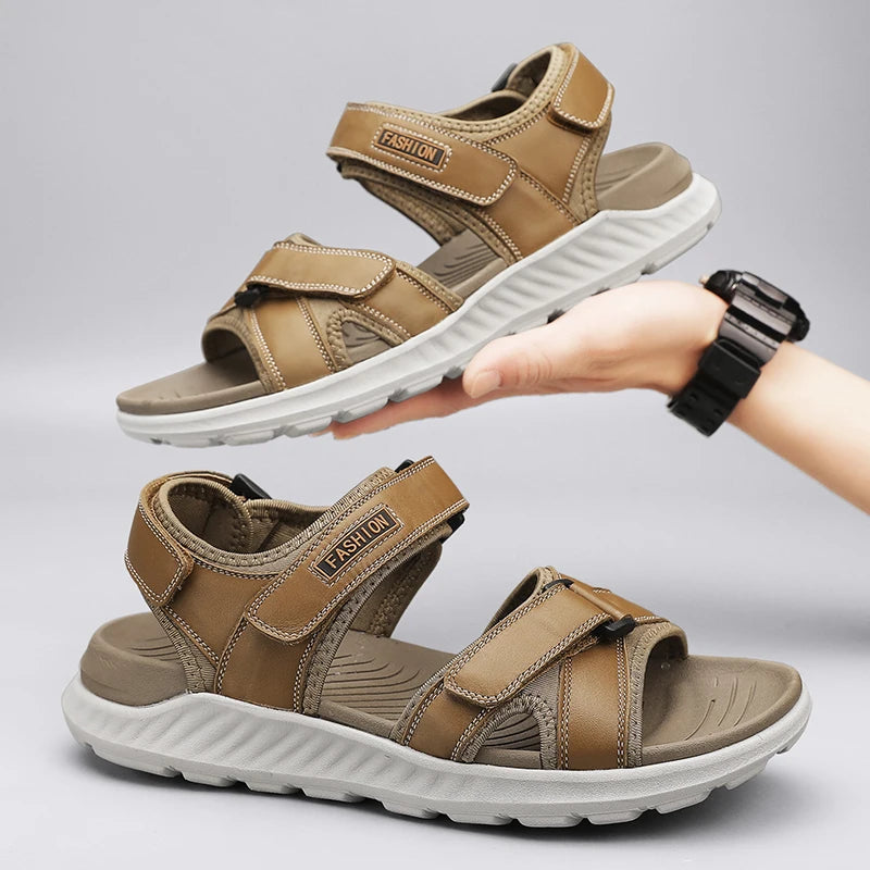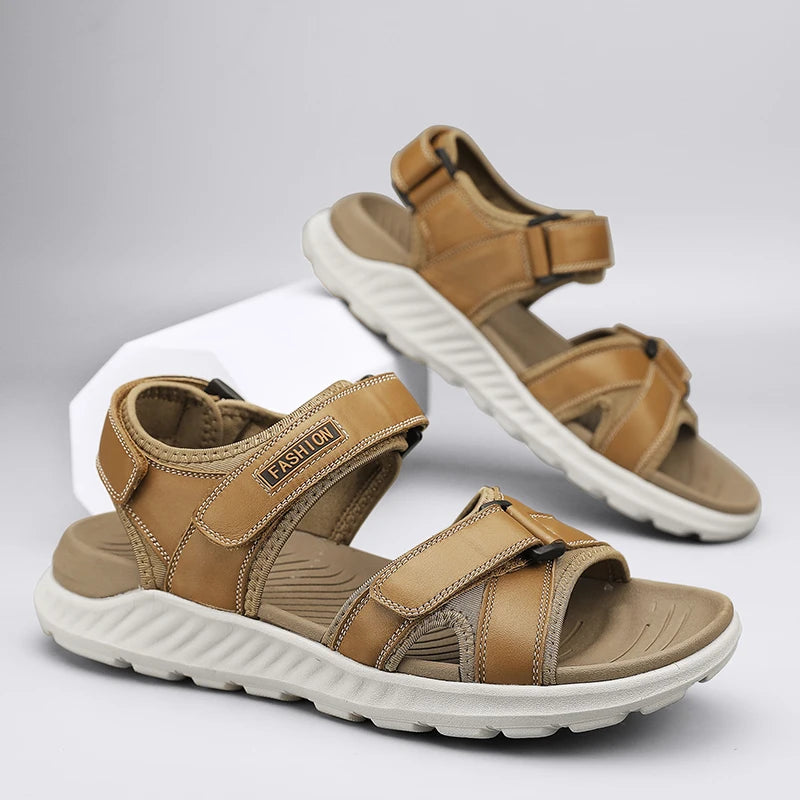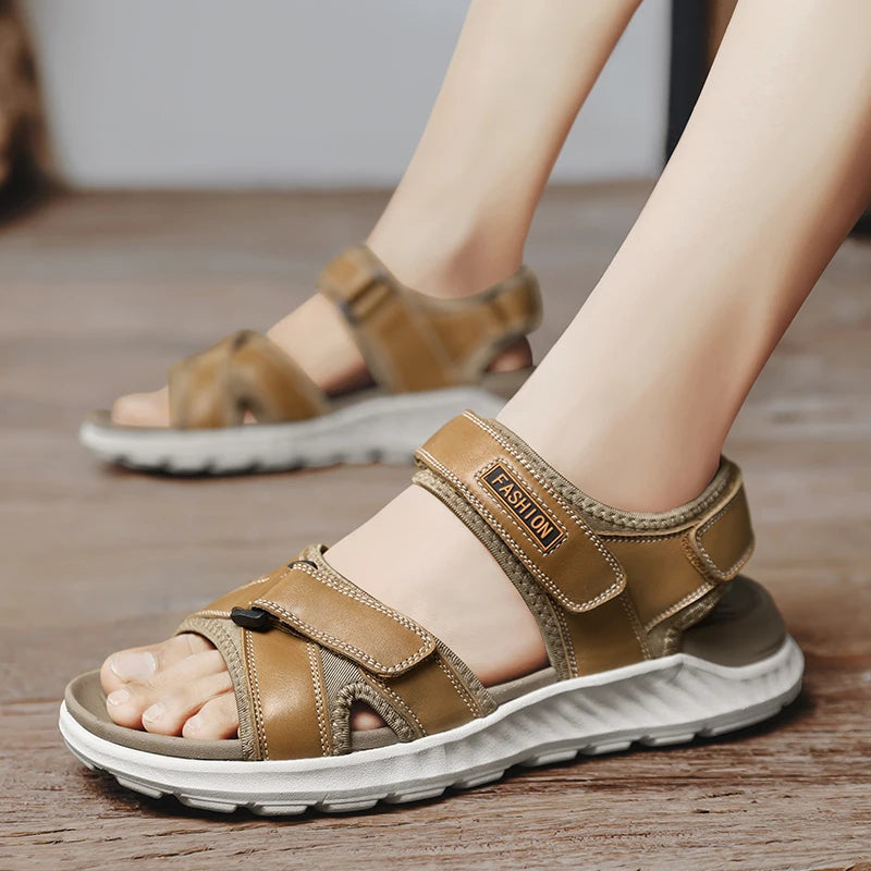 Yeknu Summer men sandals outdoor Leisure Chunky Bottom Sewing Breathable Hollow Slip-On Genuine Leather Men Business Sandals men