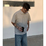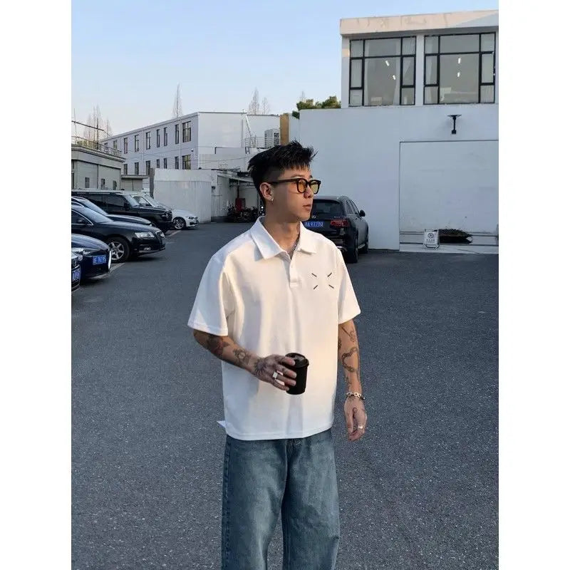 Yeknu Summer New 100% Cotton High Street Hip-hop Polo Shirt Short Sleeve T-shirt Men's Japanese Casual Niche Loose Solid Color Top