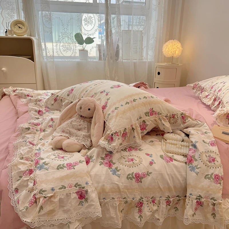 Yeknu Summer Quilt 2024 New Cotton Korean Ins Lace Fragmented Series Air Condition Quilt High Quality Summer Blanket set