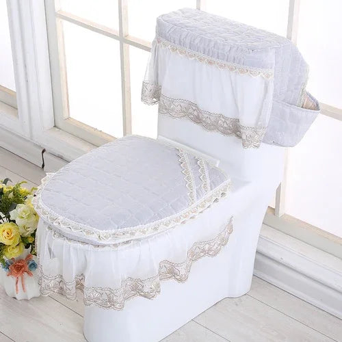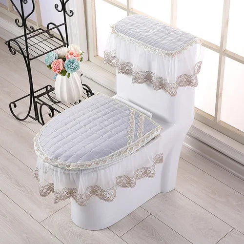 Yeknu Three Piece Toilet Mat Set European Lace All-season Universal Seat Cushion Cover Toilet Toilet Cover for Winter Household Use