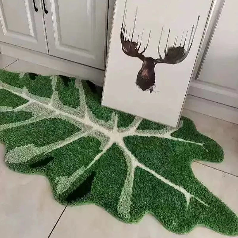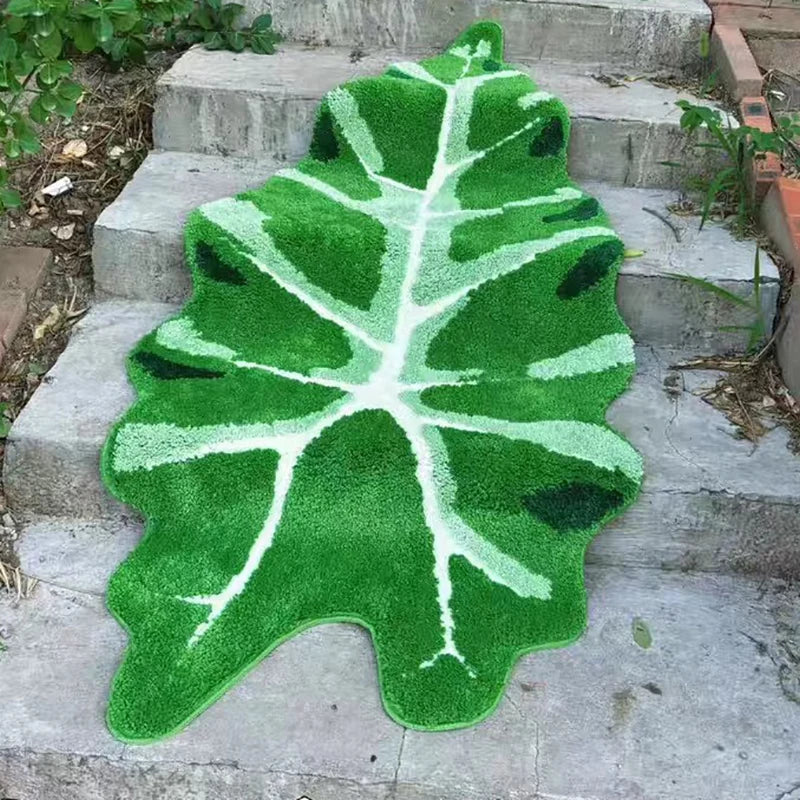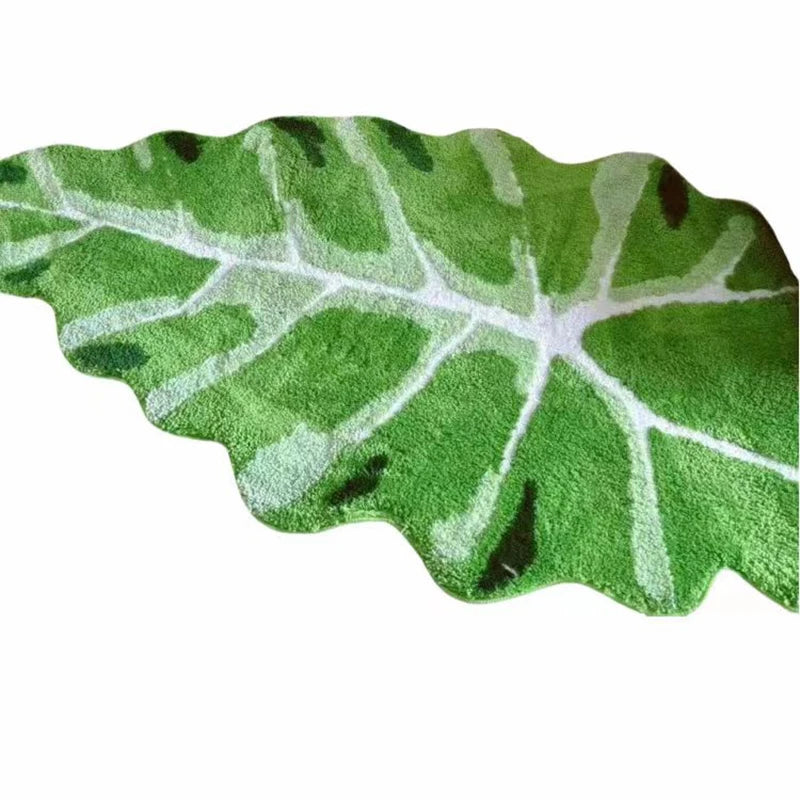 Tufting Green Leaf Bedroom Rug Soft Fluffy Bedside Mat Carpet Area Floor Tidy Pad Plant Doormat Aesthetic Home Kids Room Decor