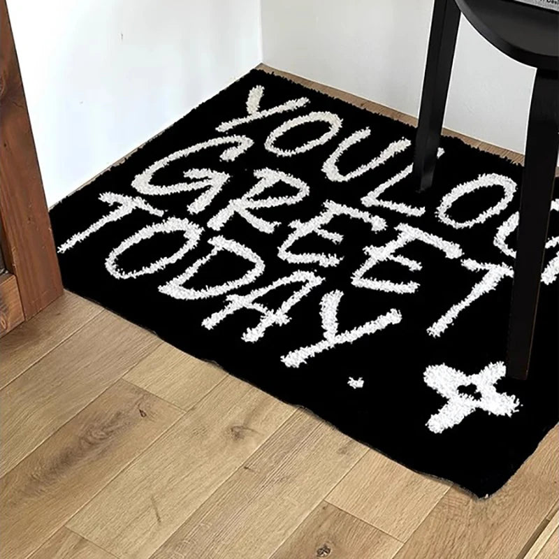 Yeknu Tufting Letters Bathroom Mat Black White Bedroom Doormat Bathmat Rug Fluffy Carpet Floor Pad Aesthetic Home Room Decor 50x80cm