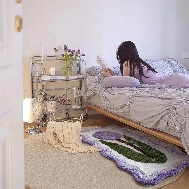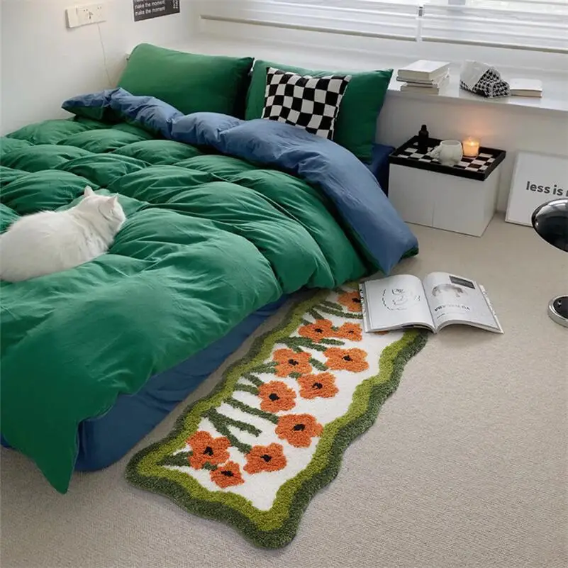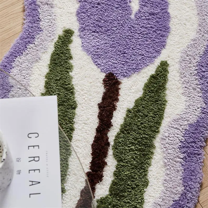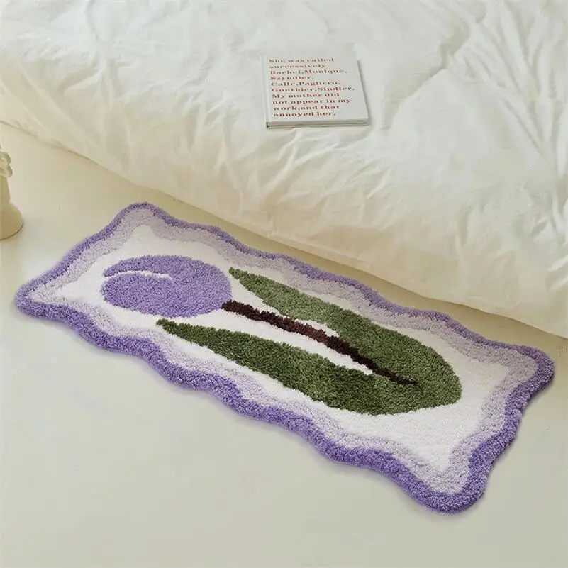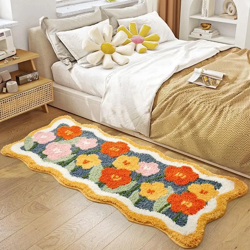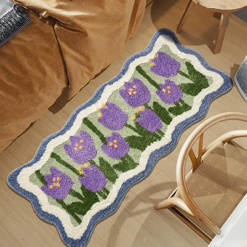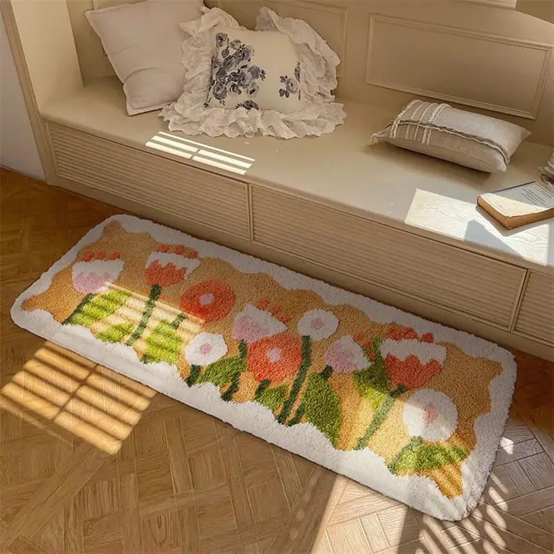 Yeknu Tulip Flower Long Carpet Soft Furry Bedside Rug Living Room Mirror Front Carpet Non-slip Bedroom decoration Mats