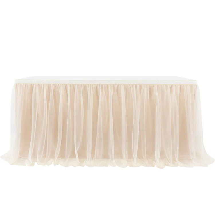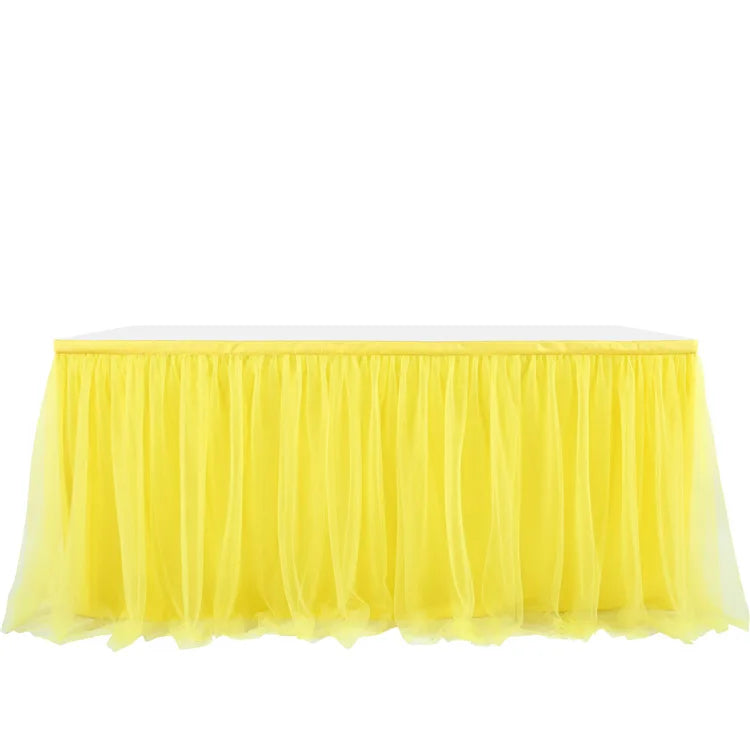 Yeknu Tulle table skirt high-end gold-rimmed mesh wedding New Year's party decoration hotel supplies mesh table skirt table cover