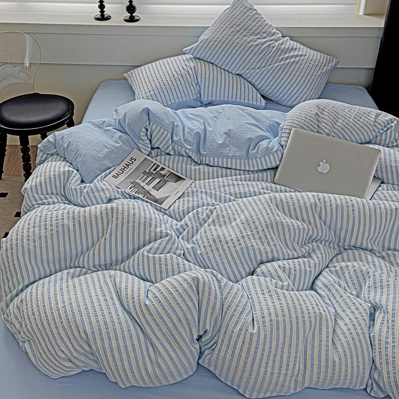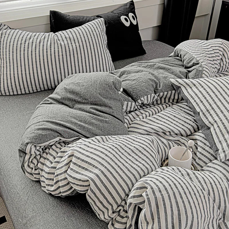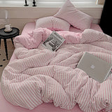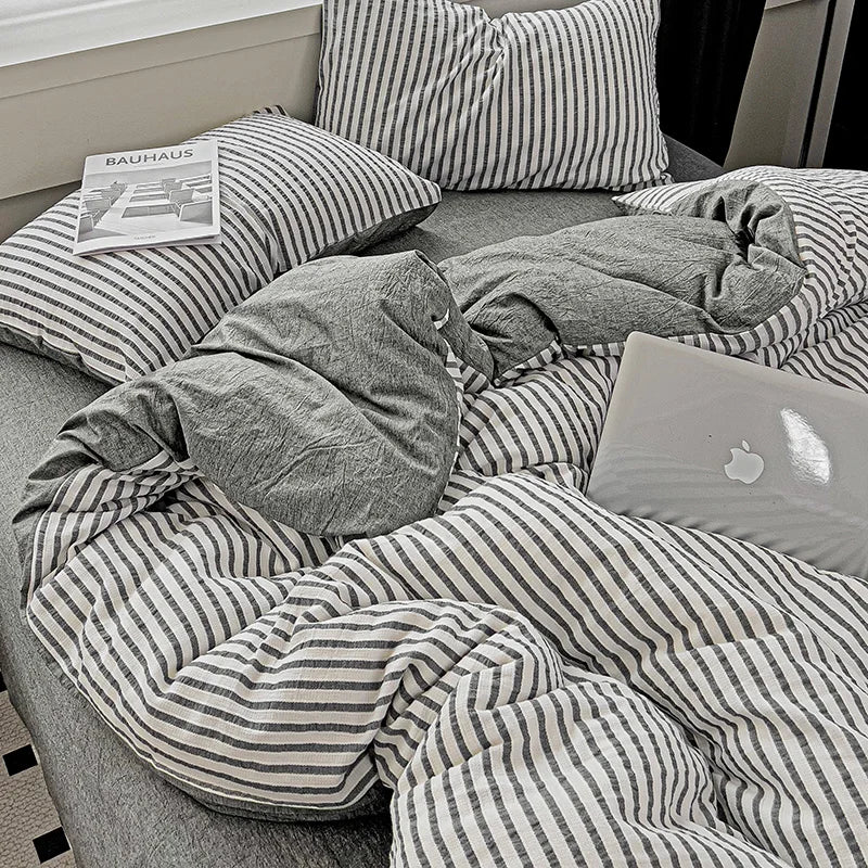 Yeknu Vertical Stripes Bedding Comforter set Duvet Cover bedsheets set pillowcases Bedding Linens Set Queen/King Bed edredones de cama