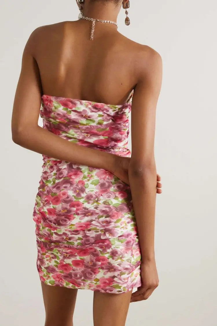 Yeknu Vintage Dresses Woman Clothes Sexy Strapless Holiday Dress 2024 Summer New Elegant Party Evening Gowns Vingate Floral Clothing