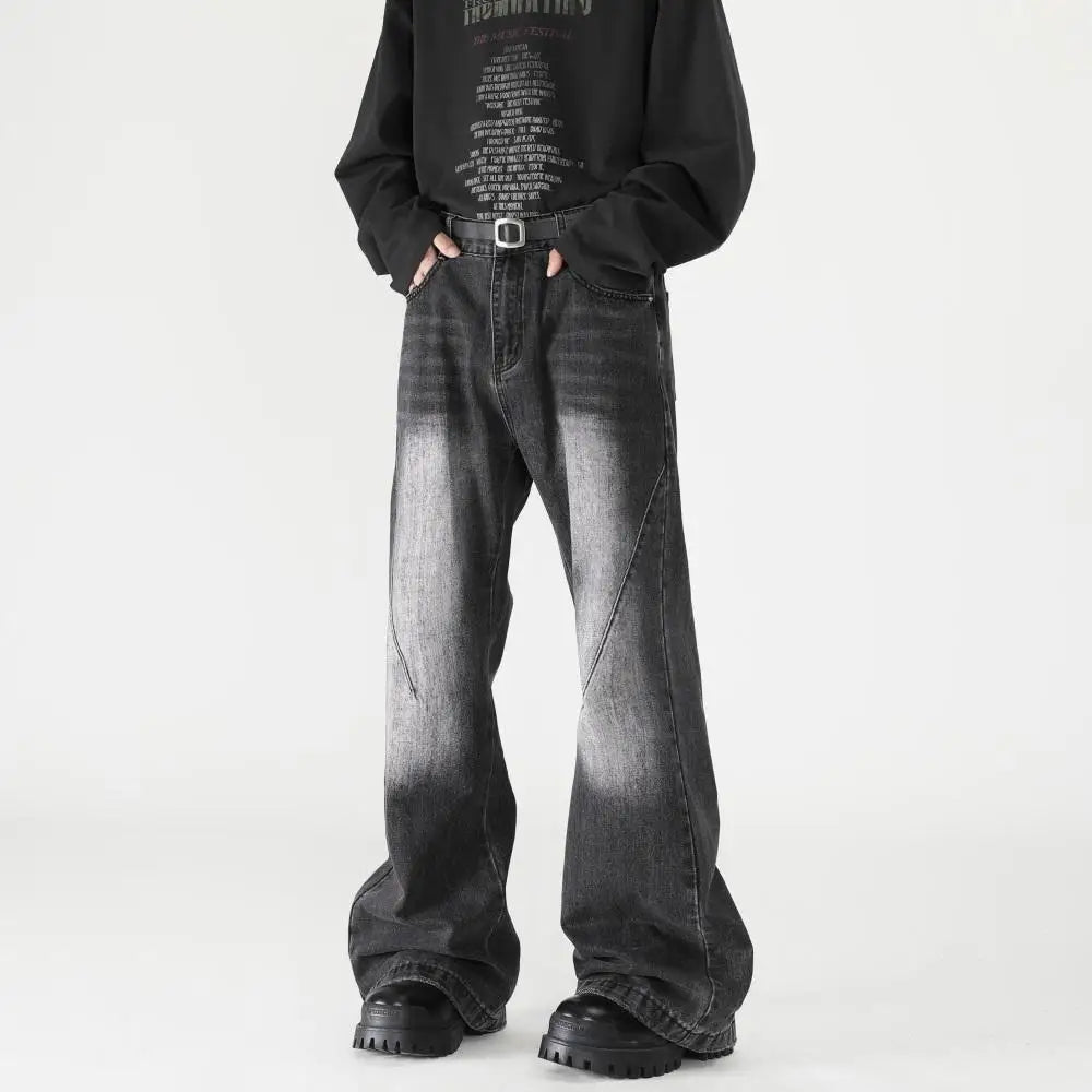 Yeknu Vintage Hip Hop Jeans Men Loose Straight Jean Pants Distressed jeans Mens High Street Chic Denim Pants Mopping Trousers