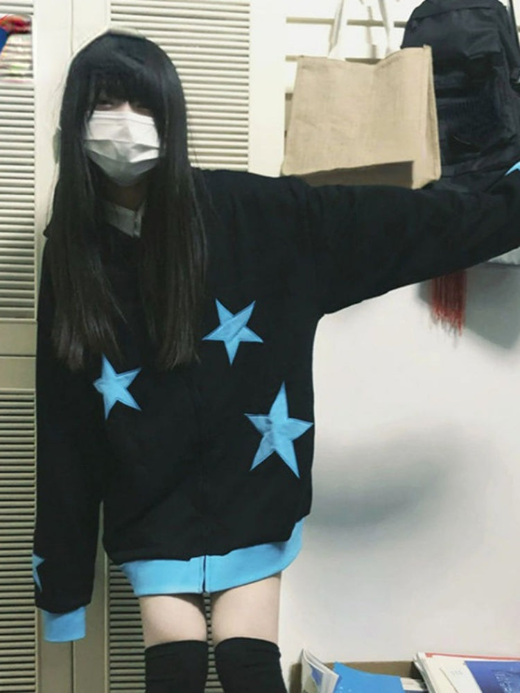 Yeknu Vintage Sweatshirt Women Fashion Star Graphic Zip Up Hoodies Goth Jacket Y2k Aesthetic Harajuku Grunge Hoody Jackets Femme Emo