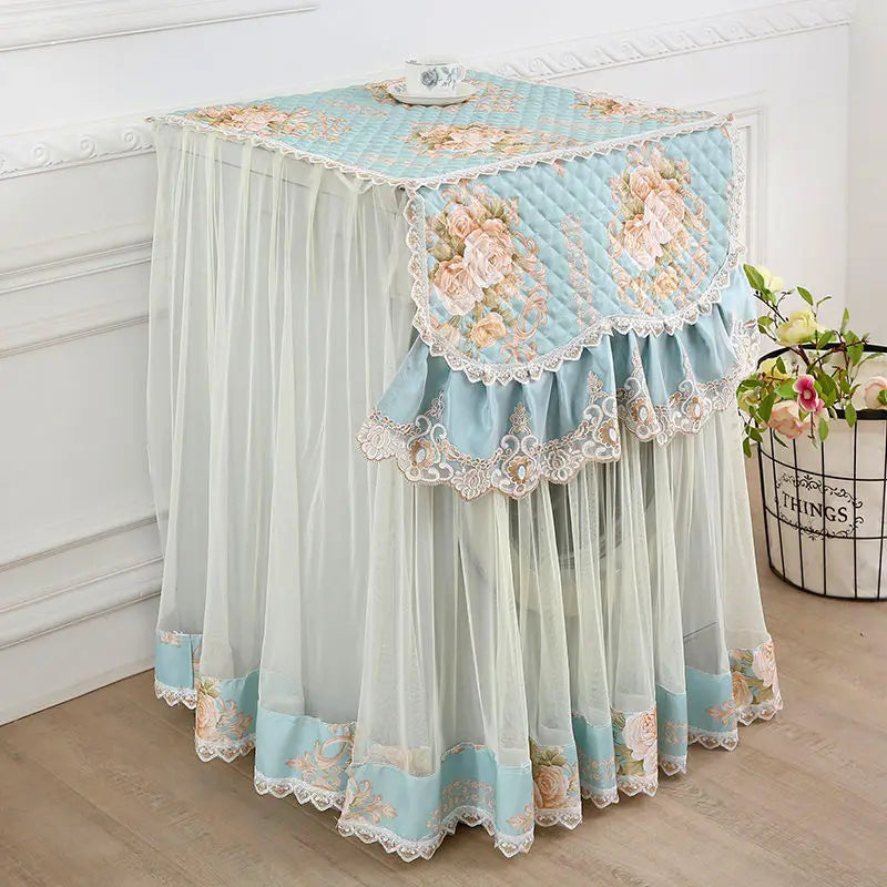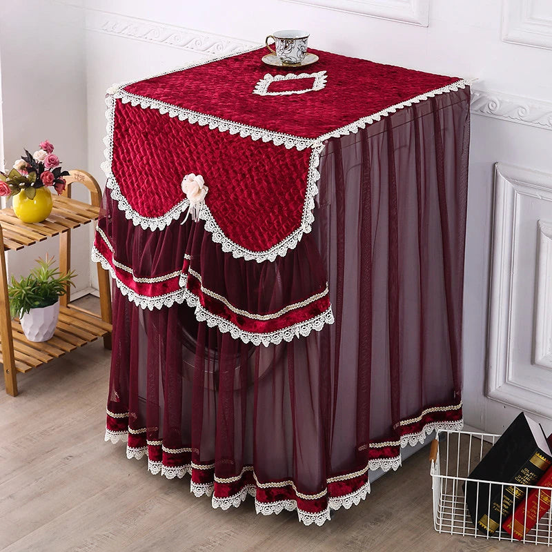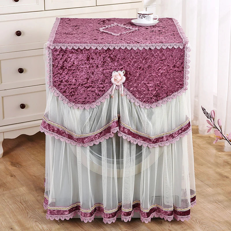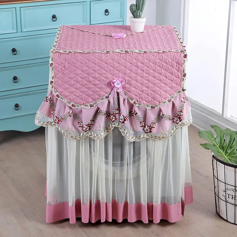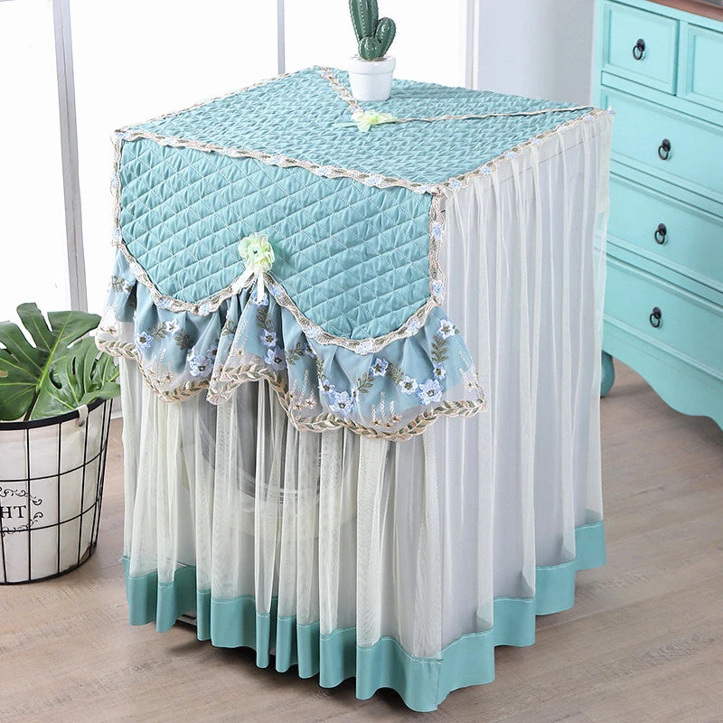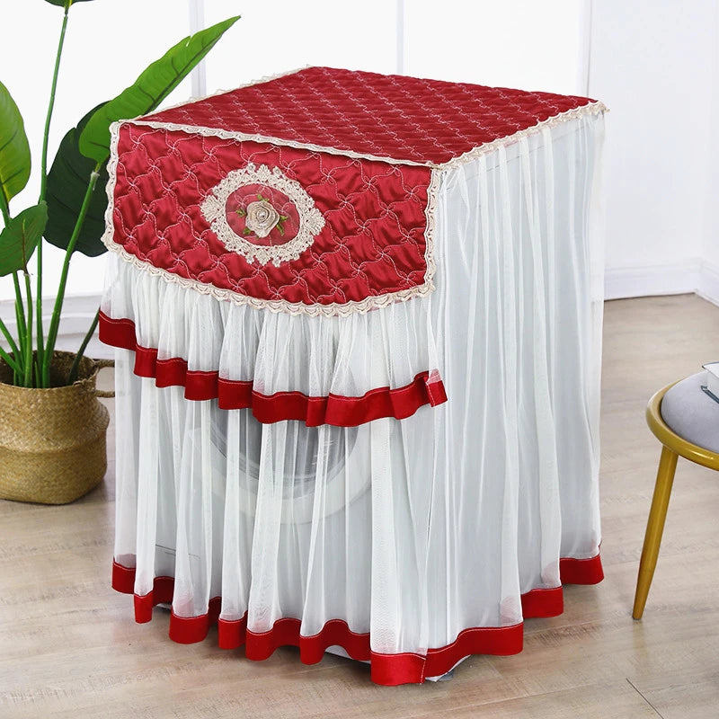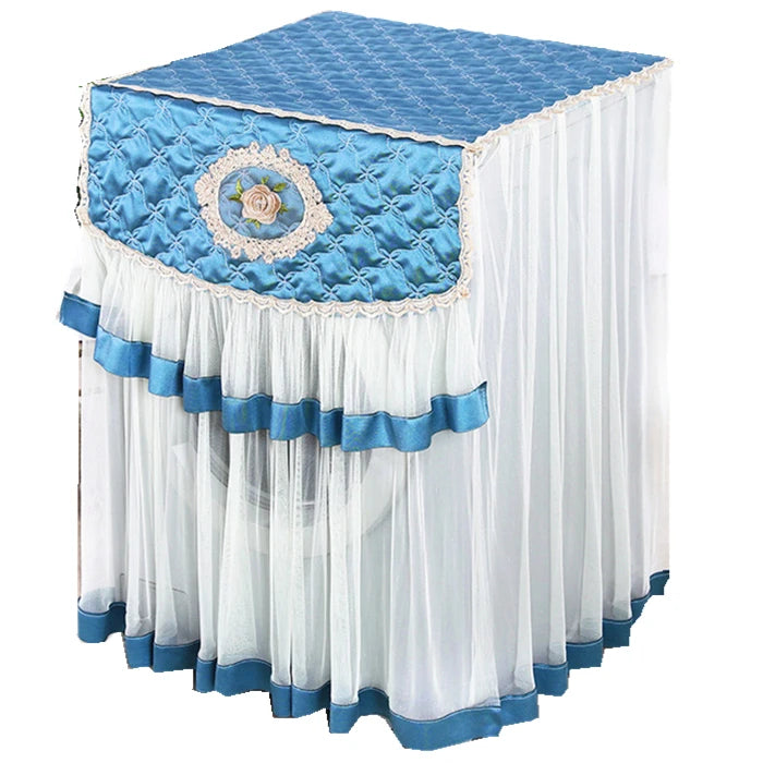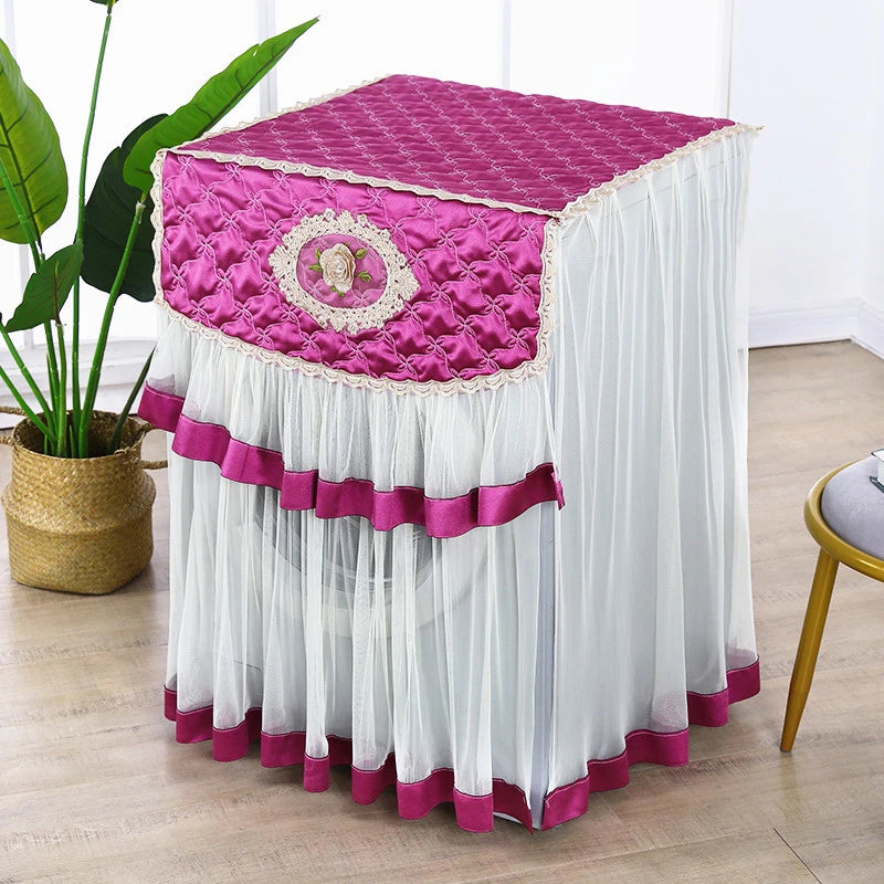 Yeknu Washing Machine Cover Universal Washing Machine Cover with Roller and Wave Wheel Upflip Washing Machine Dustproof Lace Cover