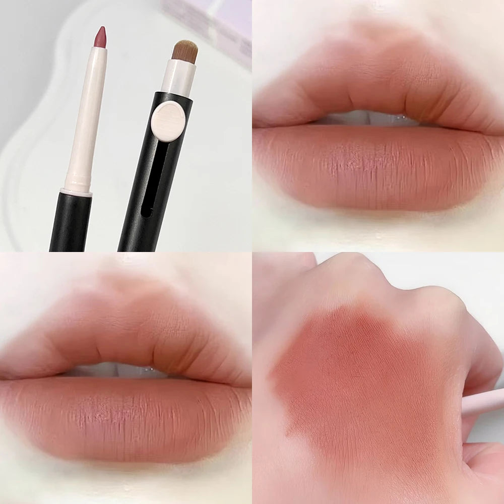 Yeknu Waterproof Lipliner Pencil with Brush Double Head Matte Lipstick Pen Outline 3D Lip Shape Lasting Non-stick Cup Nude Lips Makeup