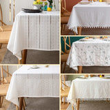 Yeknu White Hollow Lace Tablecloth Simplehem Pastoral Cotton and Linen Rectangle Household Table Cloth Round Coffee lilac Table cover