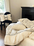 Yeknu Winter 100% Cotton Korean Princess Bedding Set Thickened Retro French Duvet Cover Sets Flower Bed Skirt Skin-friendly Fabrics