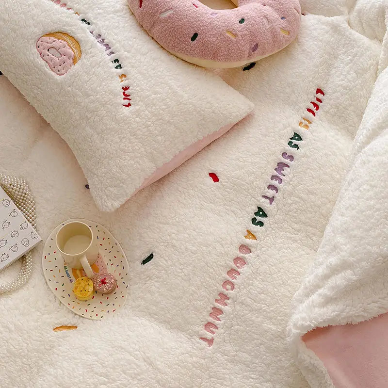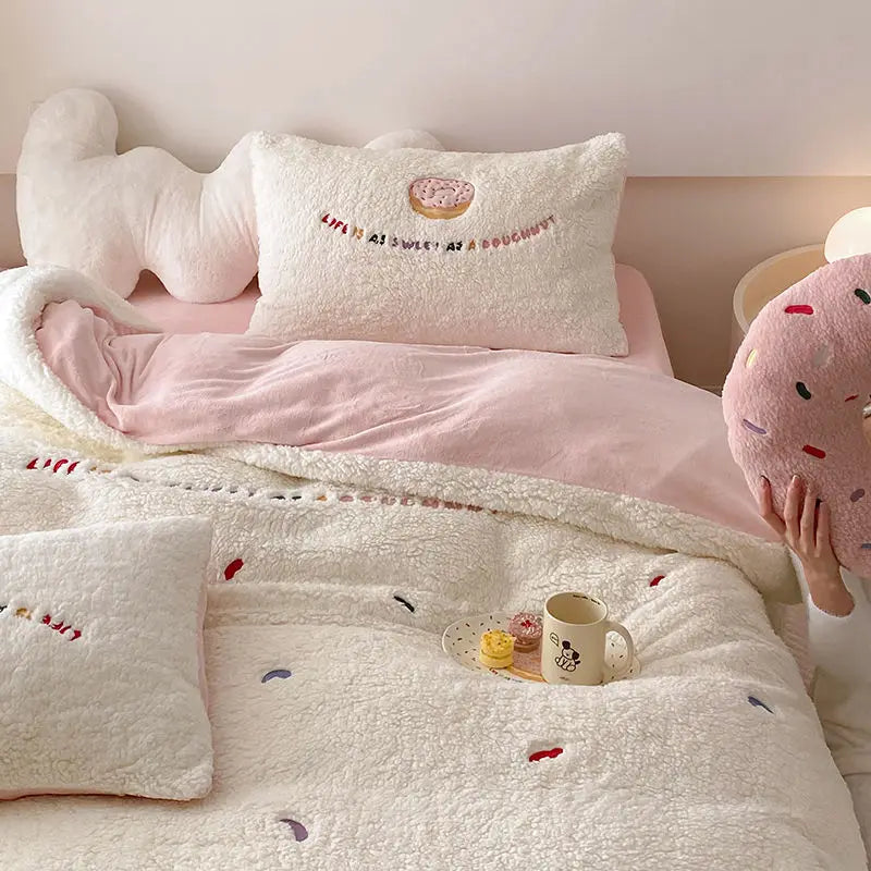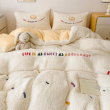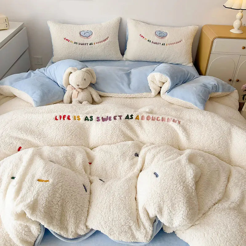 Yeknu Winter Lamb Cashmere Thickened Bed Four Duvet Cover Set-Piece Set of Thick -Warm Warm Milk Velvet Sheets Set
