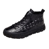 Yeknu Winter New Men's High-Top Simple Temperament Leisure Leather Shoes Mid-Top Martin Boots Light Weight British Wild Trendy Shoes