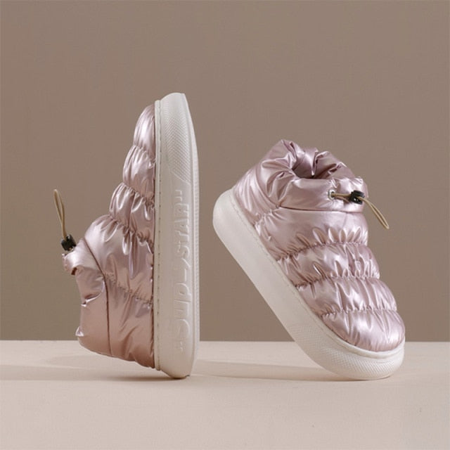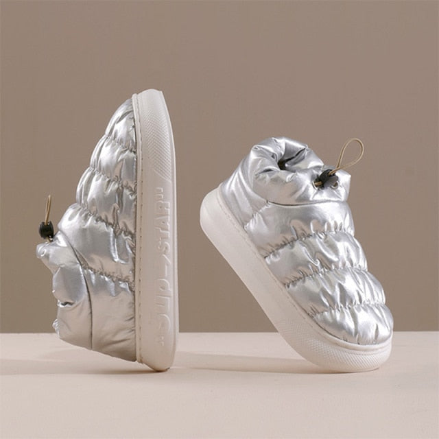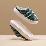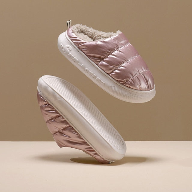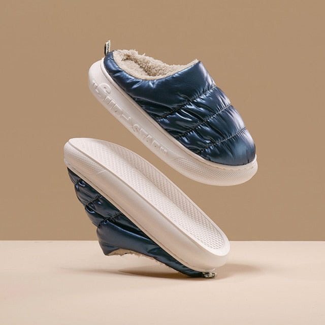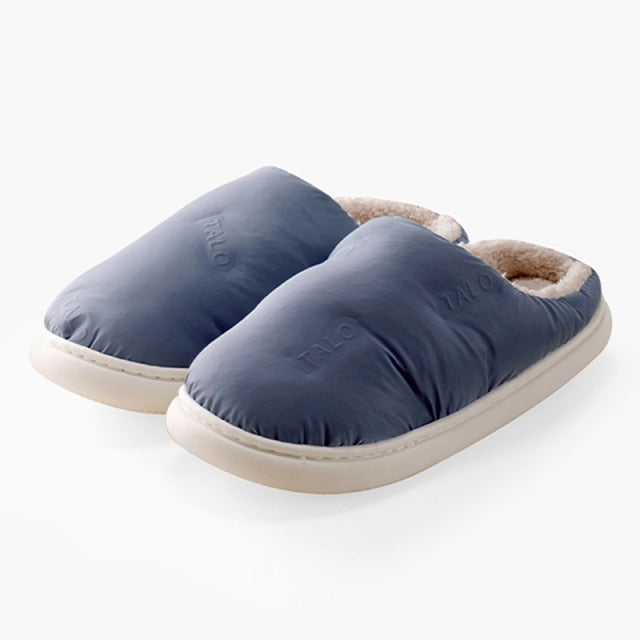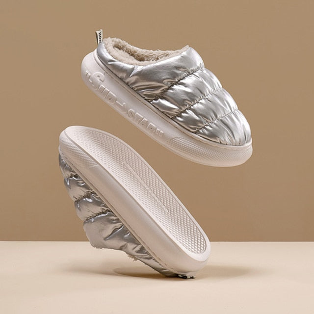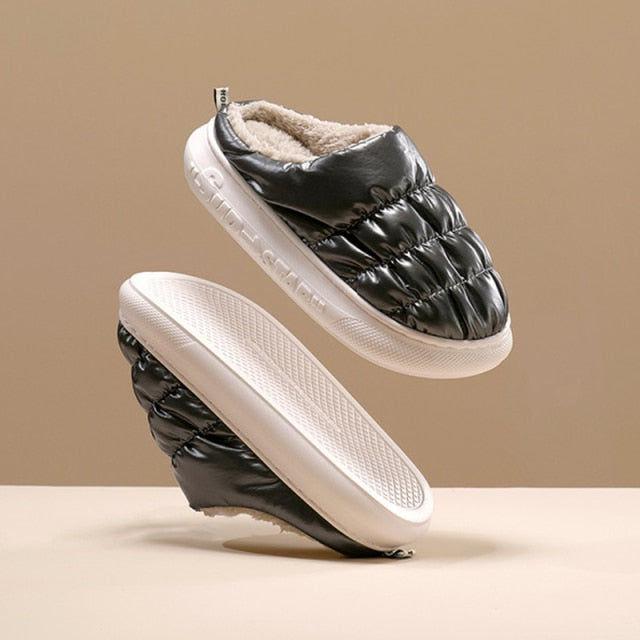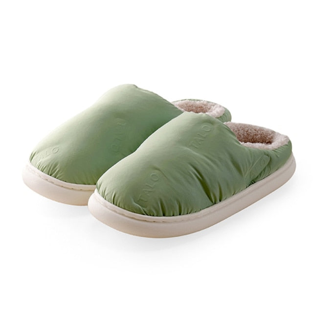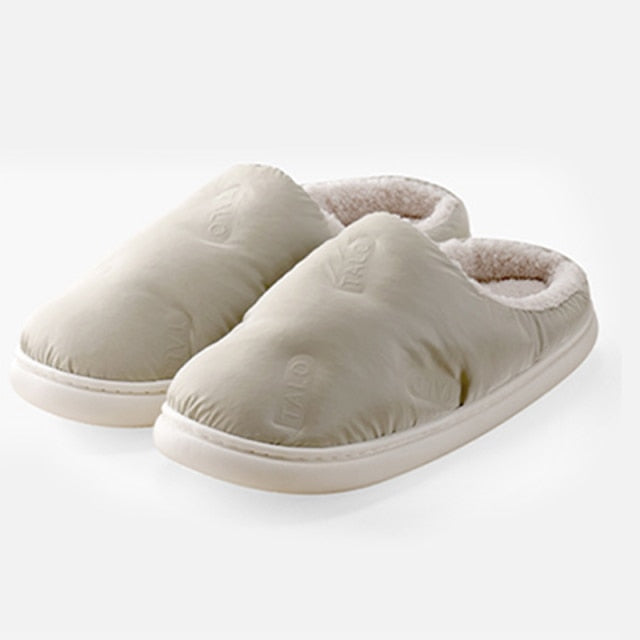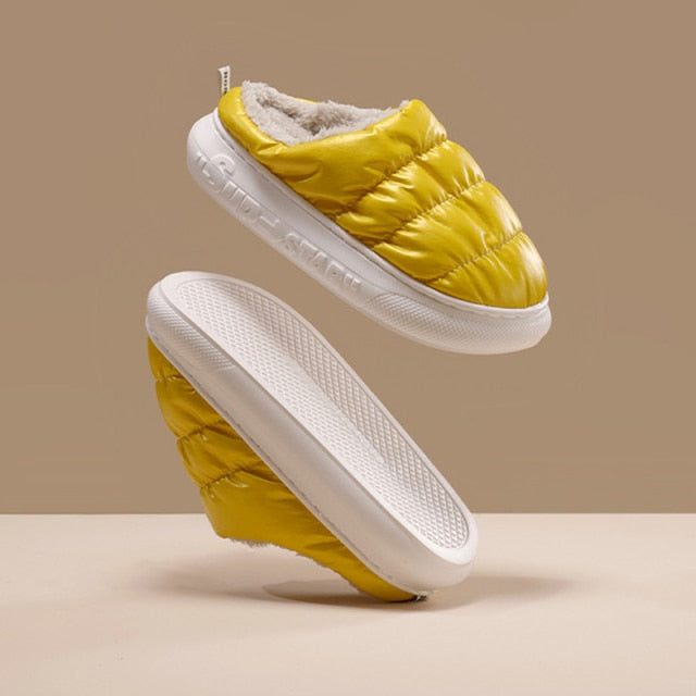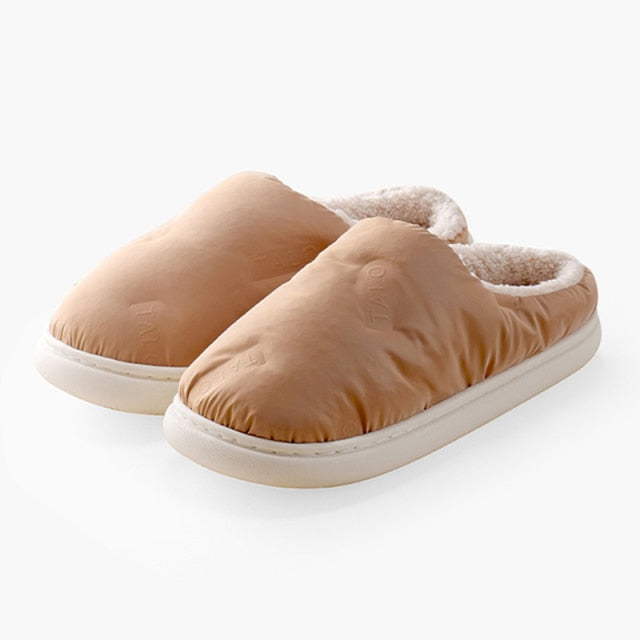 Yeknu Winter Women Cotton Slippers Waterproof Warm Plush Female Shoes Indoor Home Thick Sole Non-slip Solid Couple Slippers Fashion