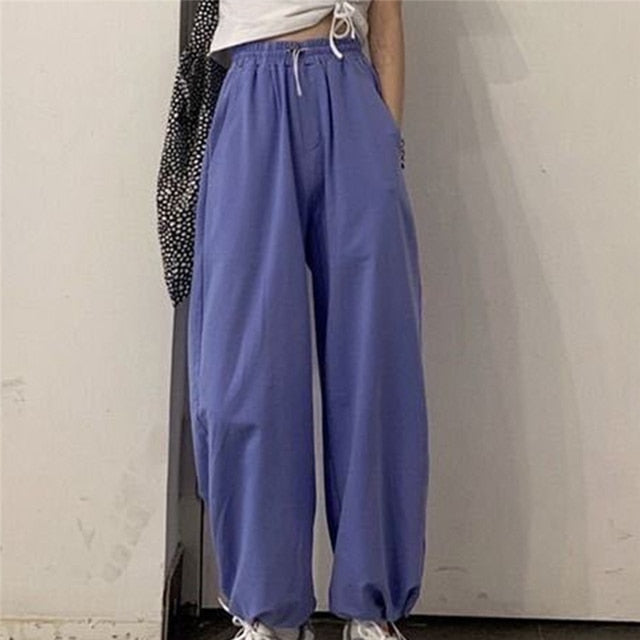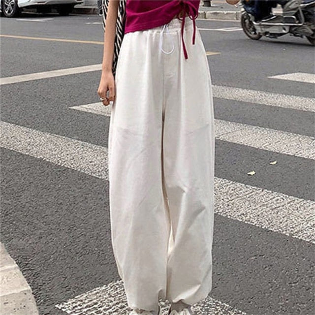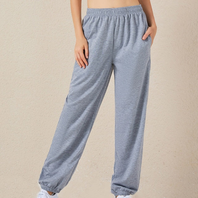 Yeknu Woman Pants Streetwear Korean Style Loose Joggers Women Sweatpants Grey High Waist Comfort Simple Basic Casual Fashion Trousers