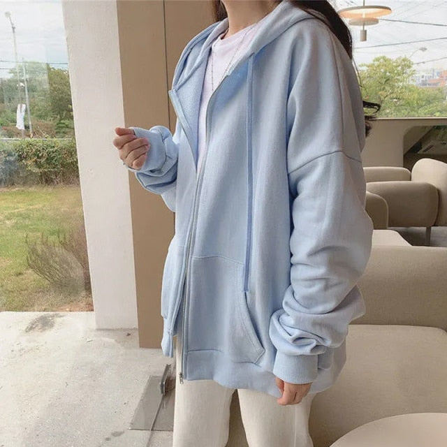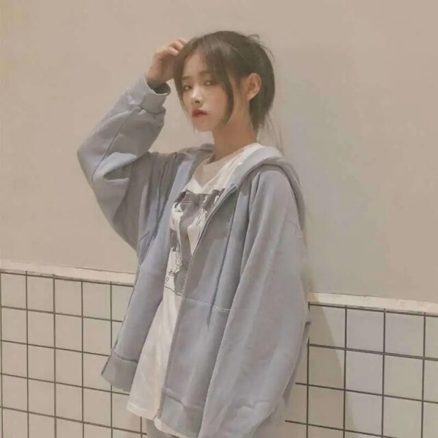 Yeknu Women Jacket Blouses Sweatshirts Casual Couple Tops Thicken Gray Hoodie Long Sleeve Loose Simple Coat Veste Femme Bomber Jacket