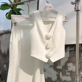 Yeknu Women Vest Two-piece Suit Sleeveless Vest Temperament Skirt Suit French Retro Skirt Medium Strecth