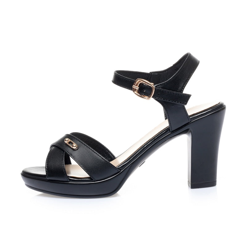 Yeknu Women's Sandals High Heel New Genuine Leather Women's Summer Shoes Small Size 33 Fashion Open Toe Women's Sandals