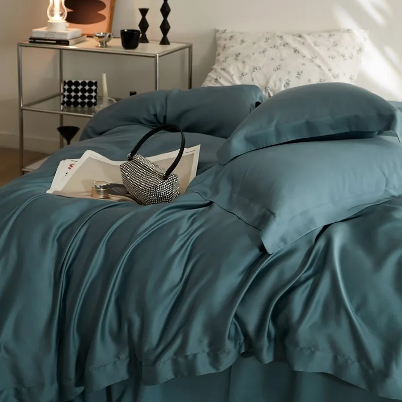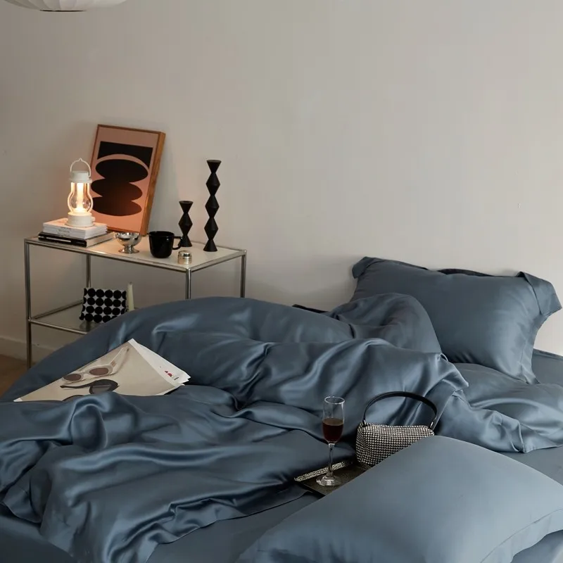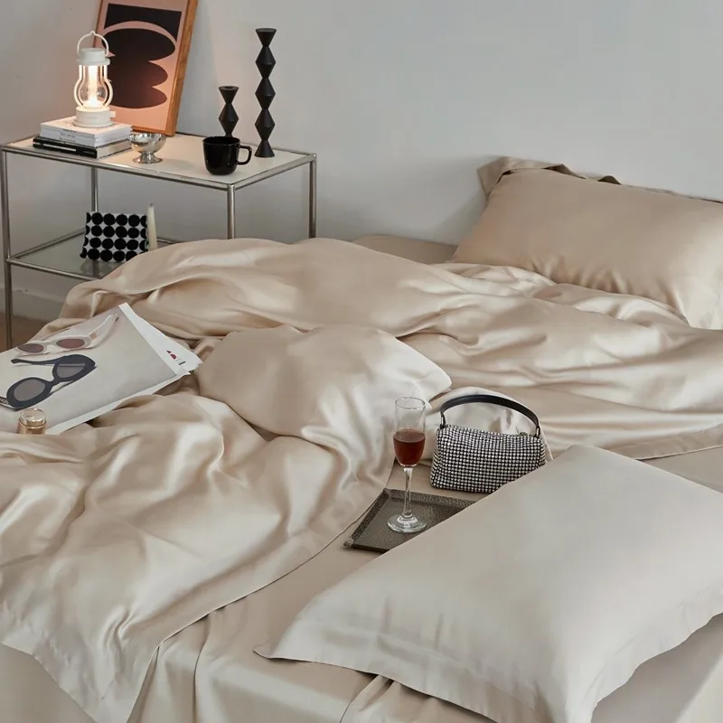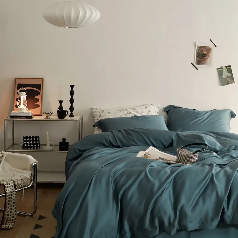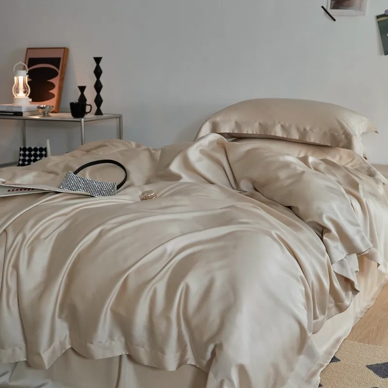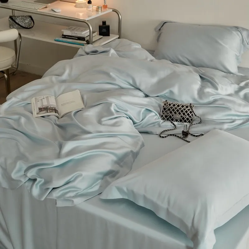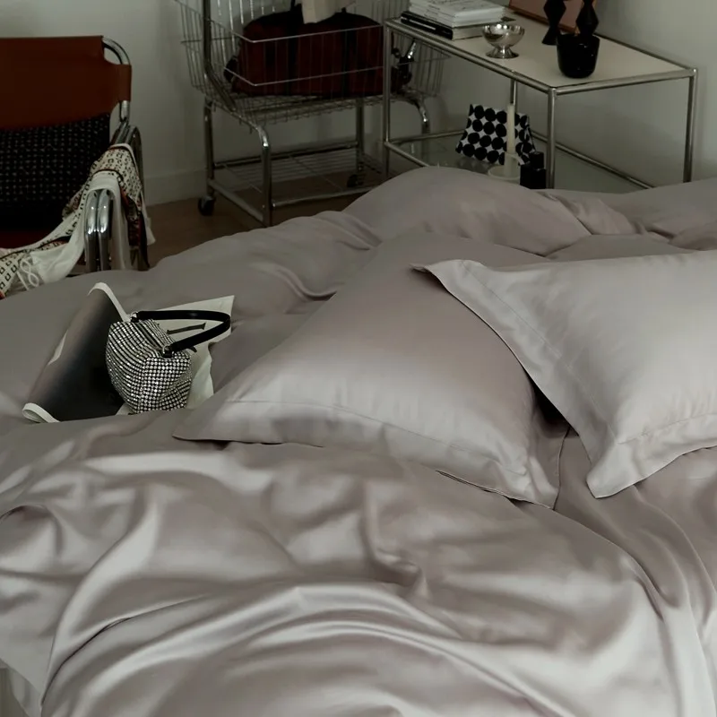 Yeknu Premium 100% Eucalyptus Lyocell Duvet Cover Bed Sheet Pillowcases Silky Soft Smooth Cooling Sheets Breathable for Night Sweats